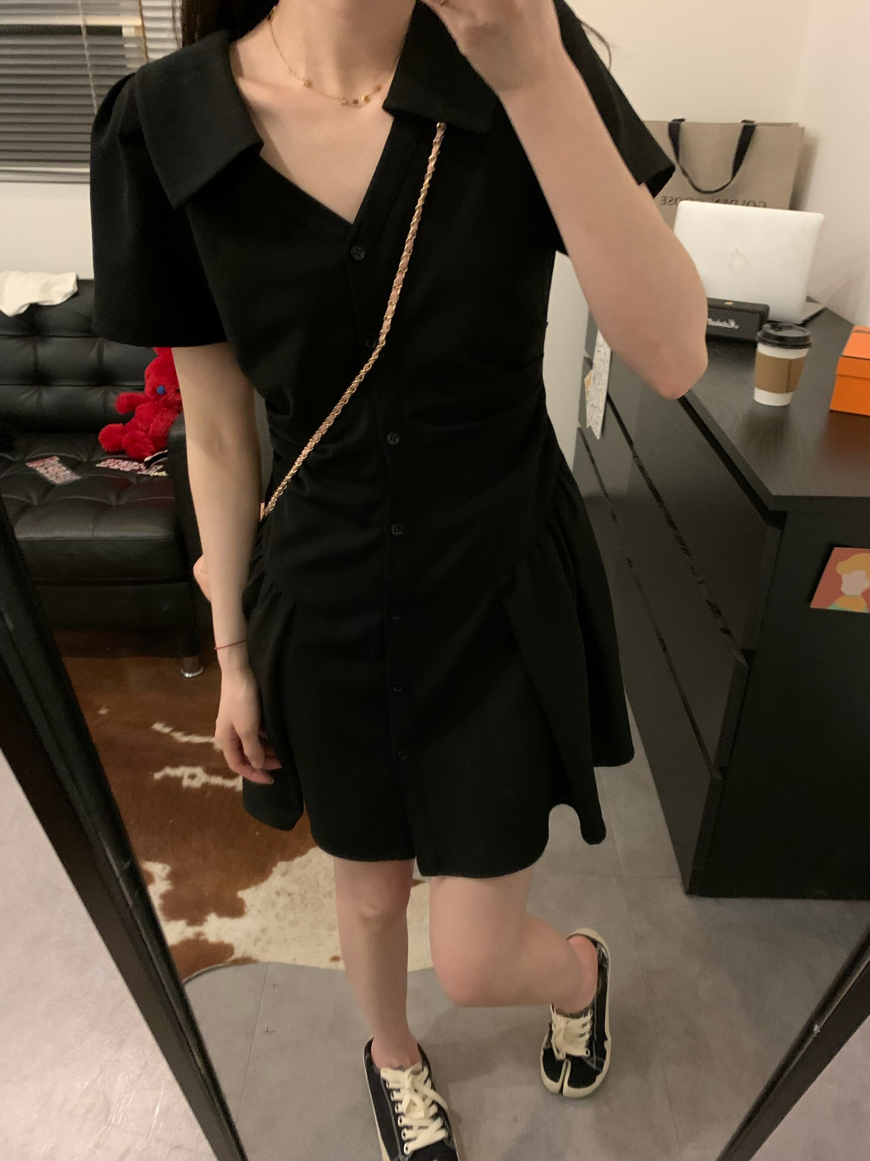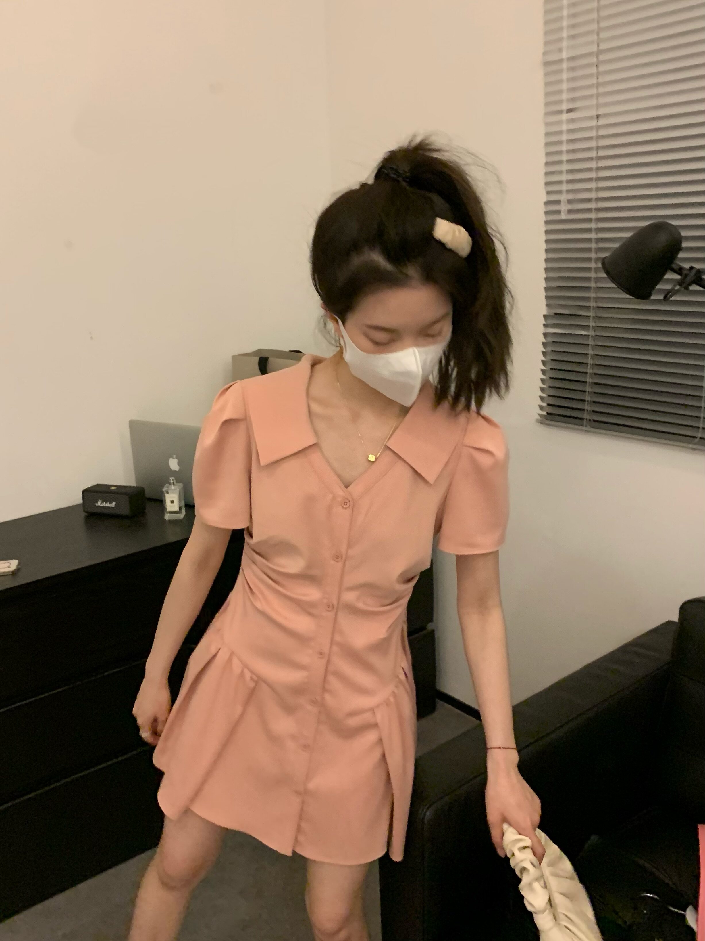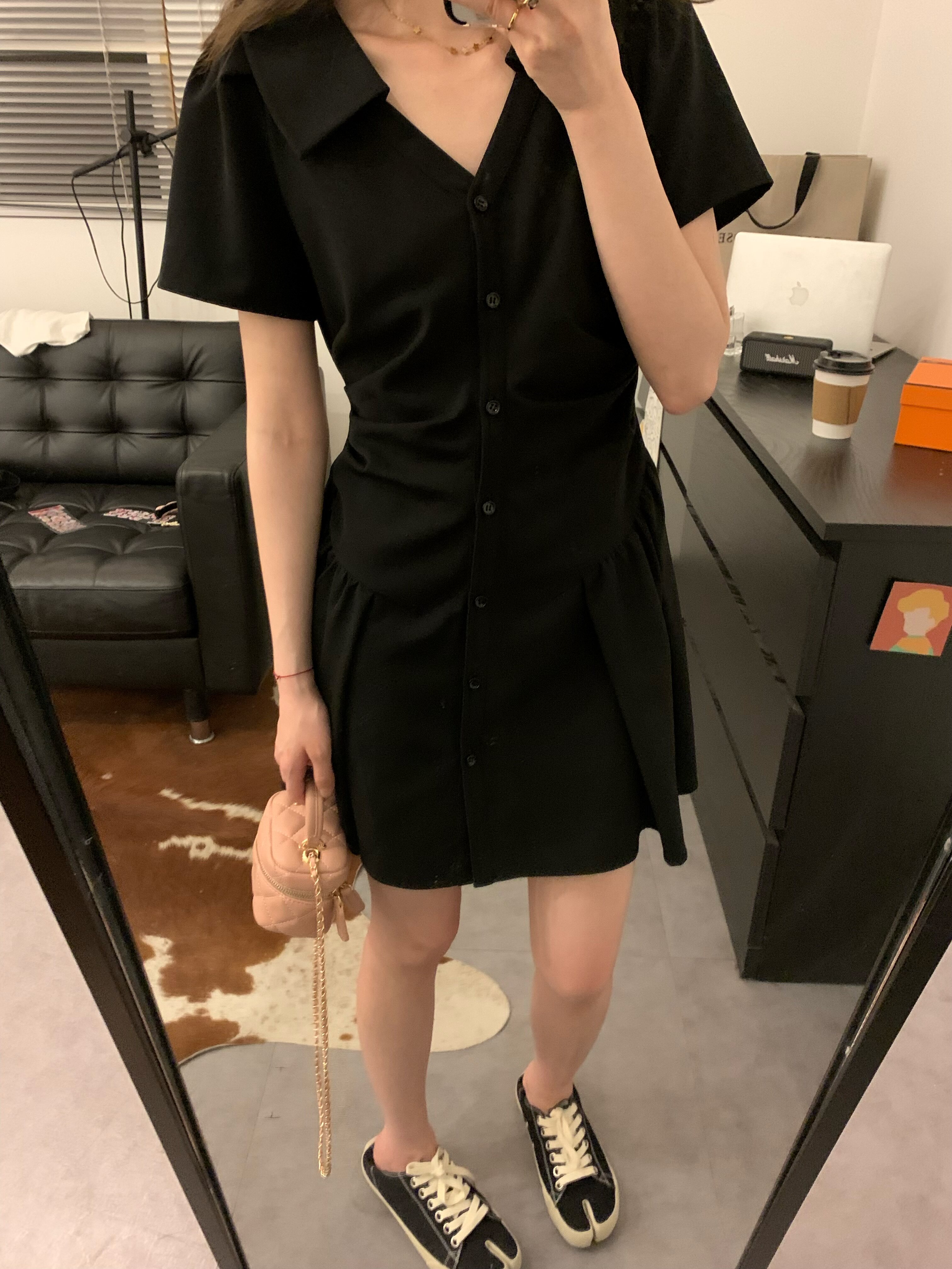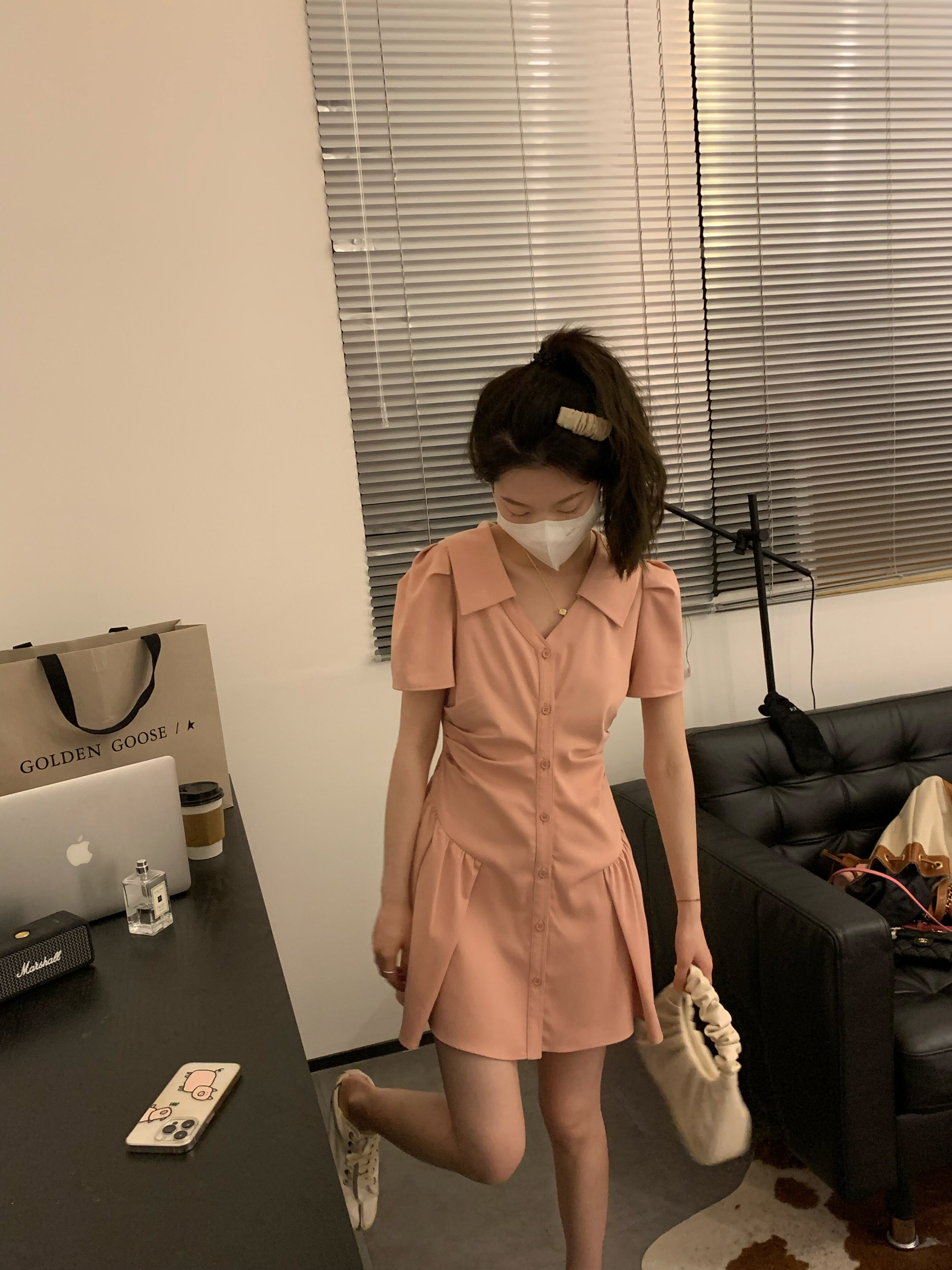 Розовая рубашка, юбка, летнее короткое платье, воротник поло, А-силуэт