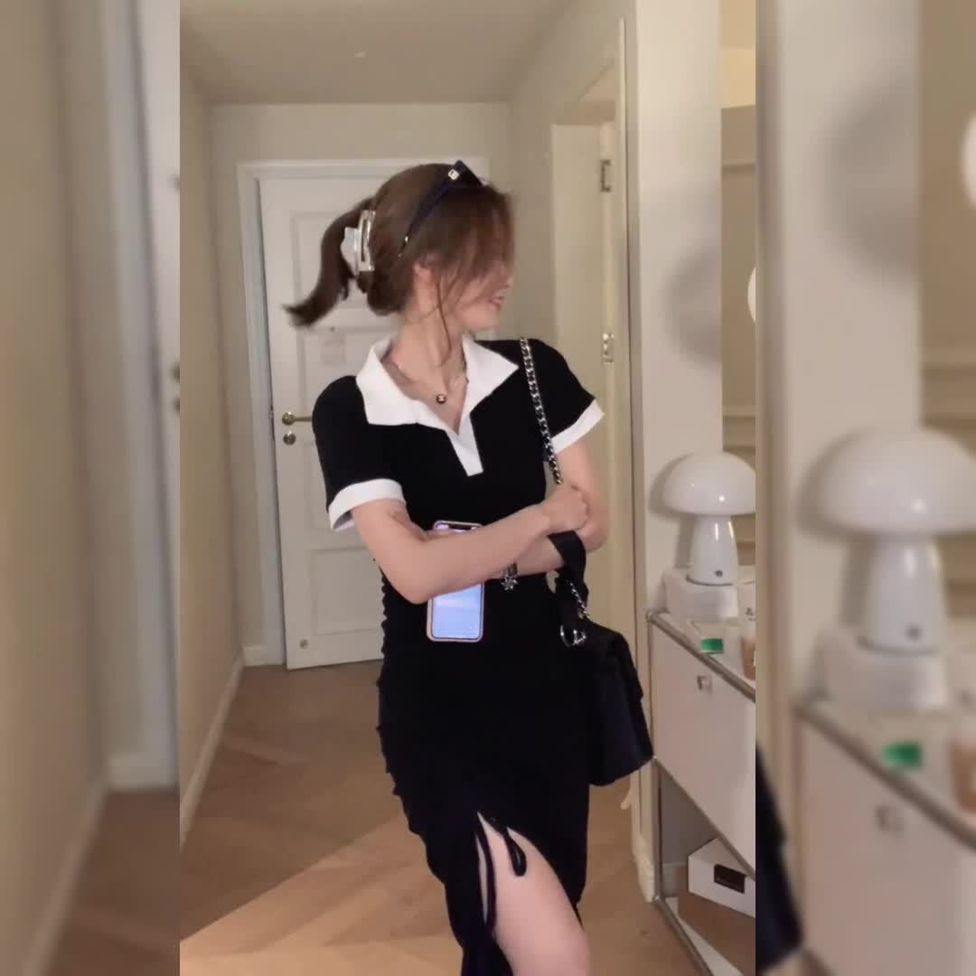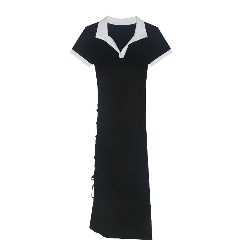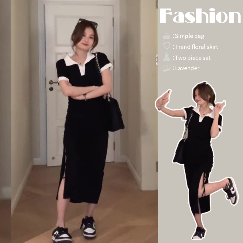 Черное платье, летняя длинная юбка, подходит для подростков, французский стиль, с акцентом на бедрах, городской стиль