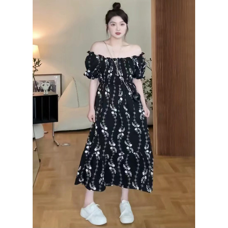 Ретро платье, длинная юбка, французский ретро стиль, большой размер, яркий броский стиль, по фигуре