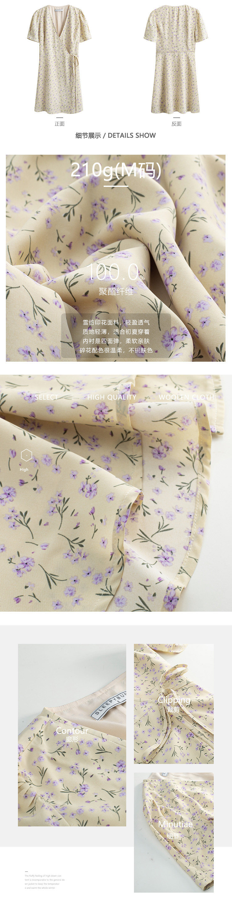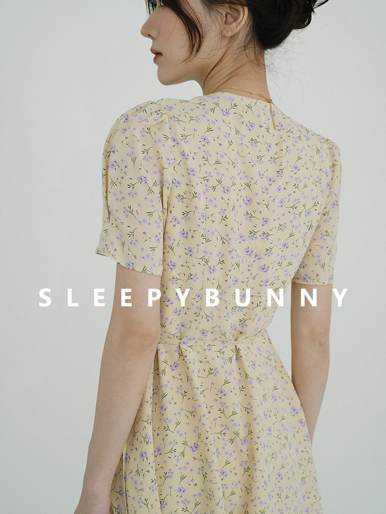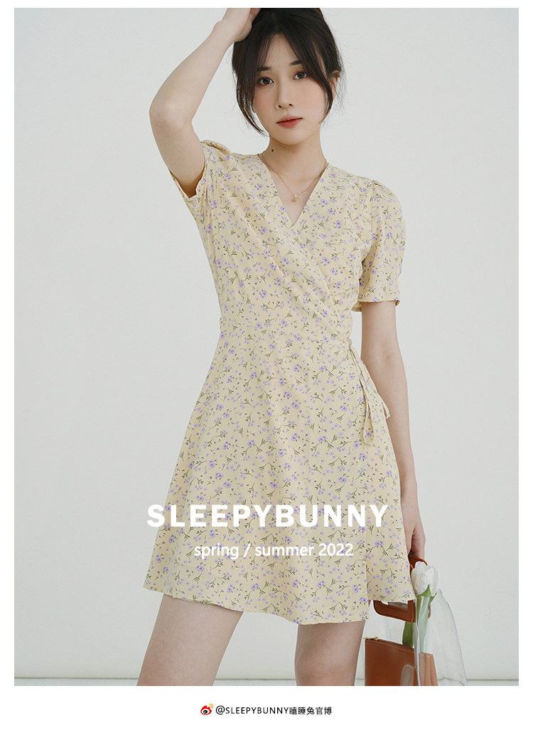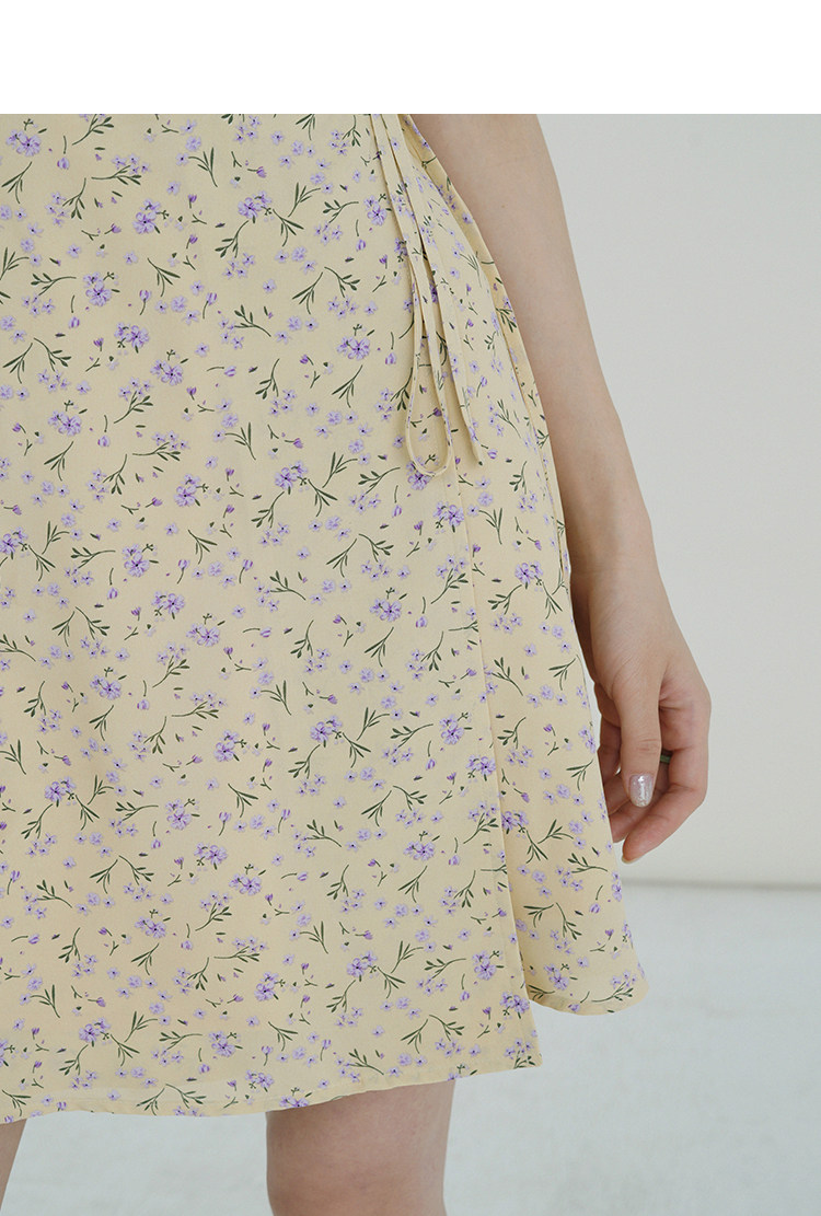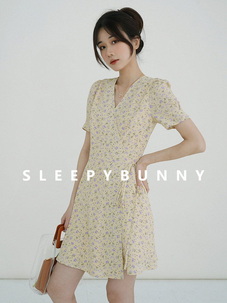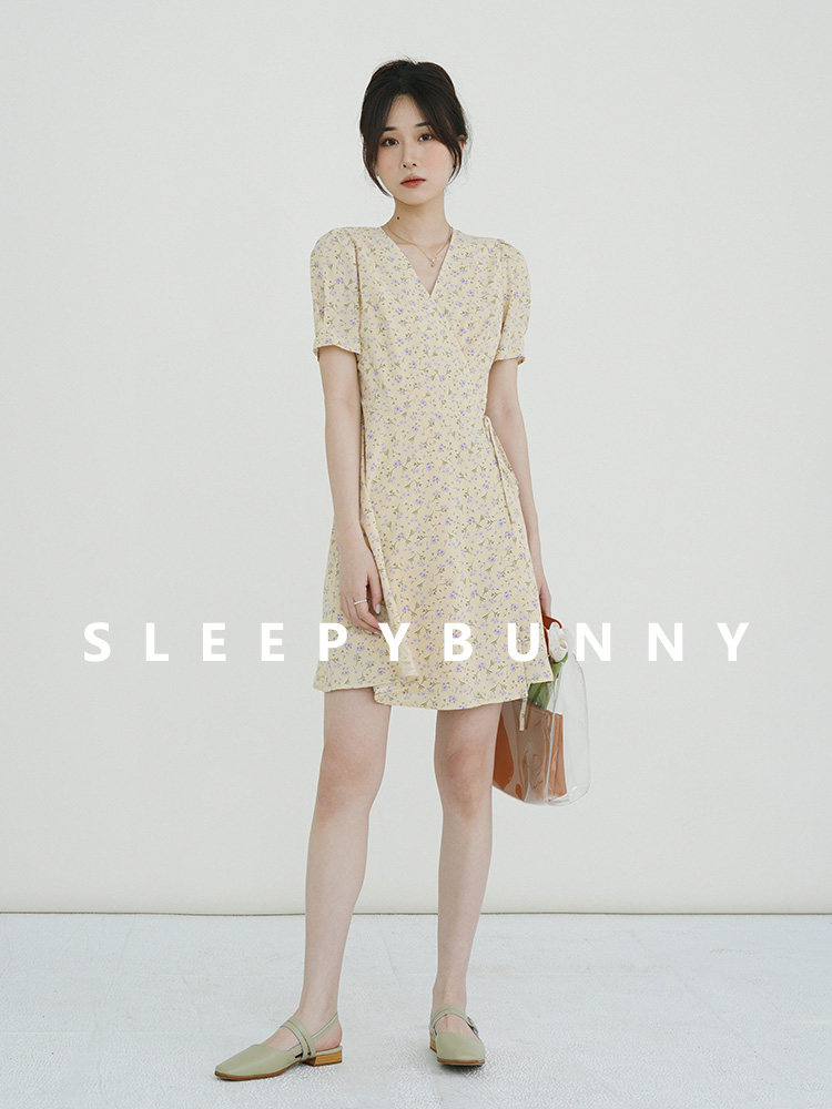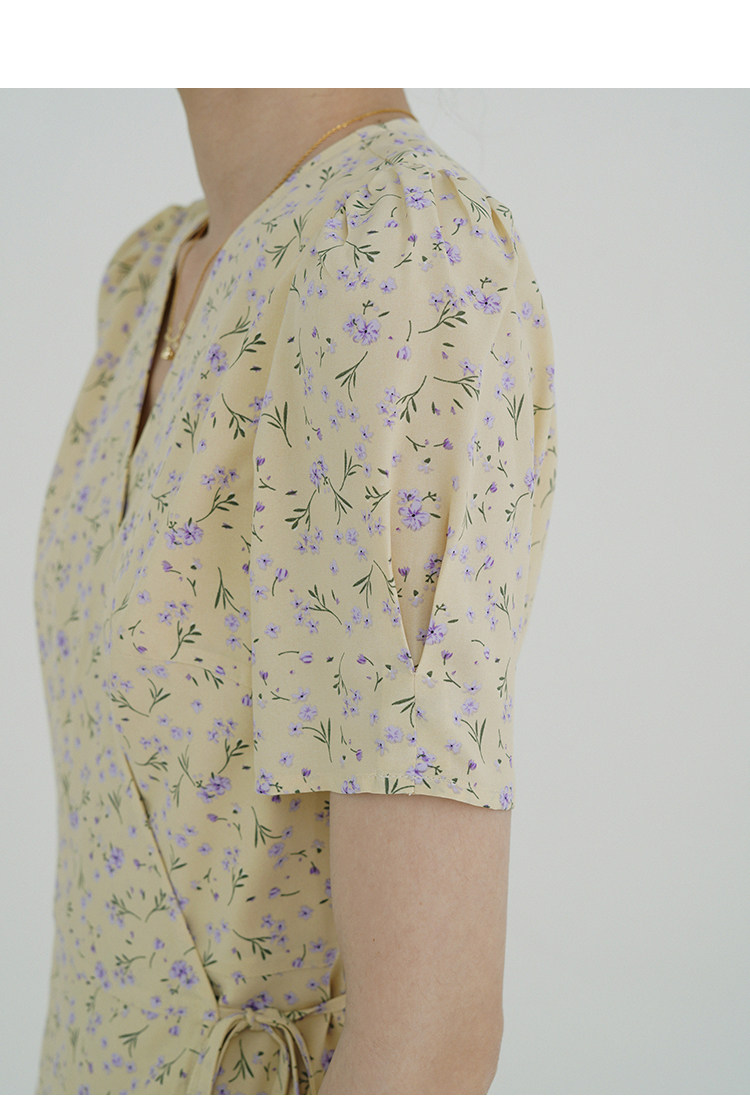 Свежий кремовый желтый ремень, милое летнее платье, V-образный вырез, цветочный принт, короткий рукав, французский стиль