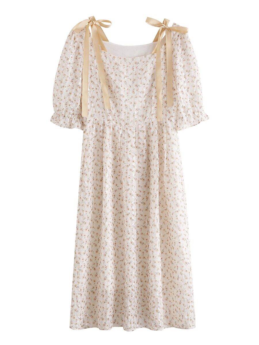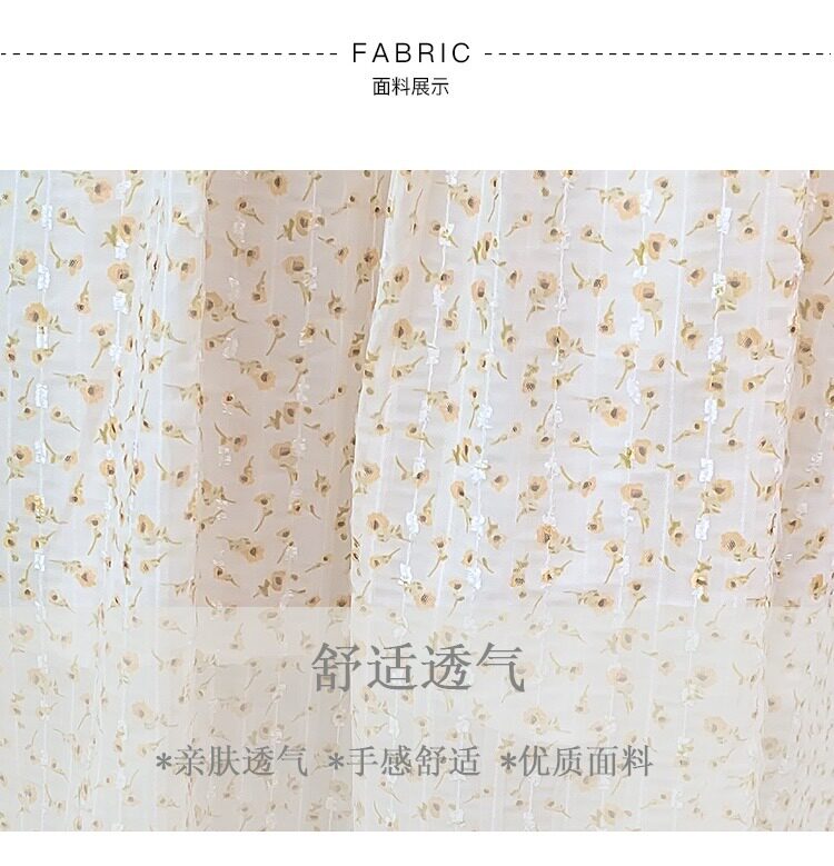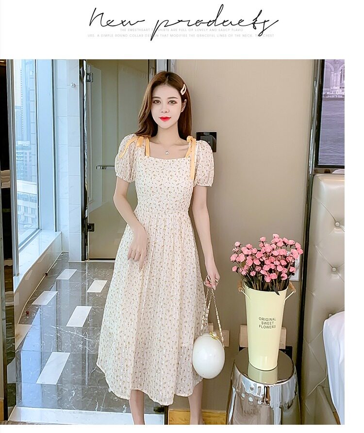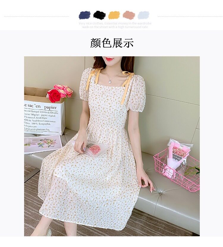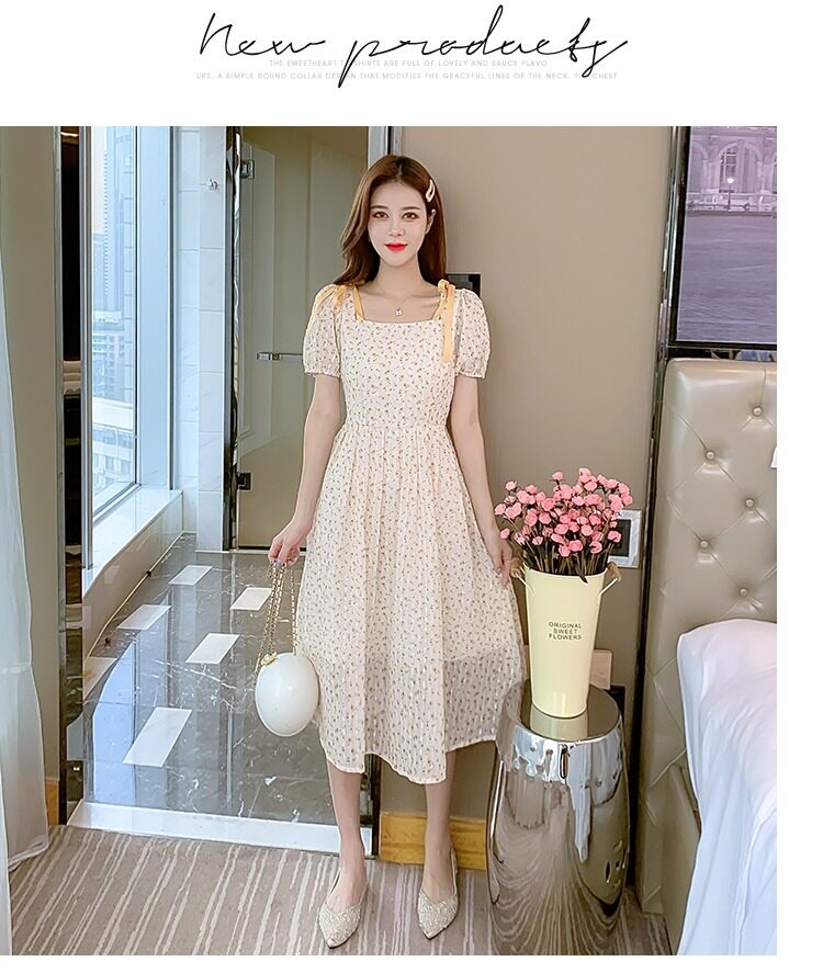 Летнее шифоновое платье, юбка, коллекция 2022, французский стиль, квадратный вырез, в цветочек