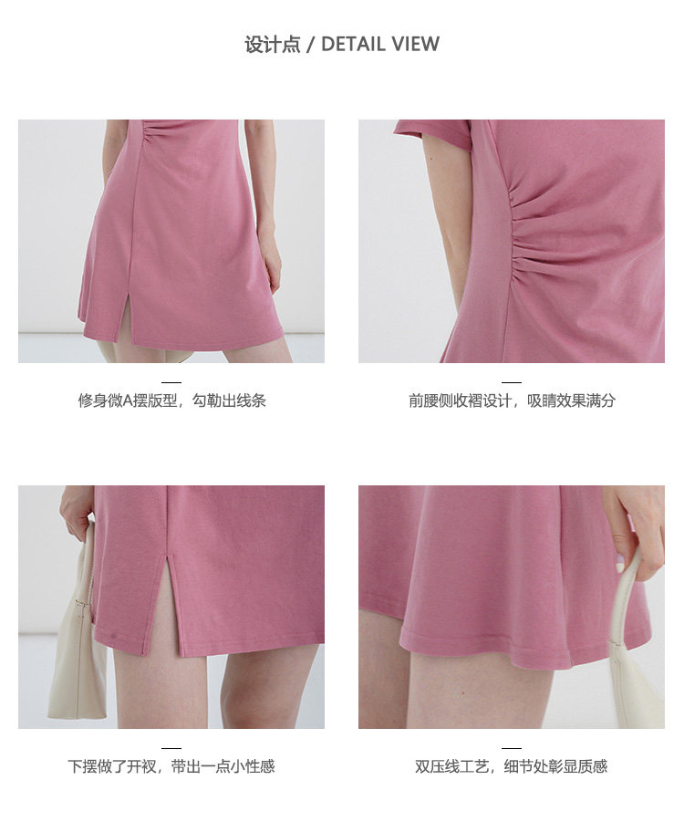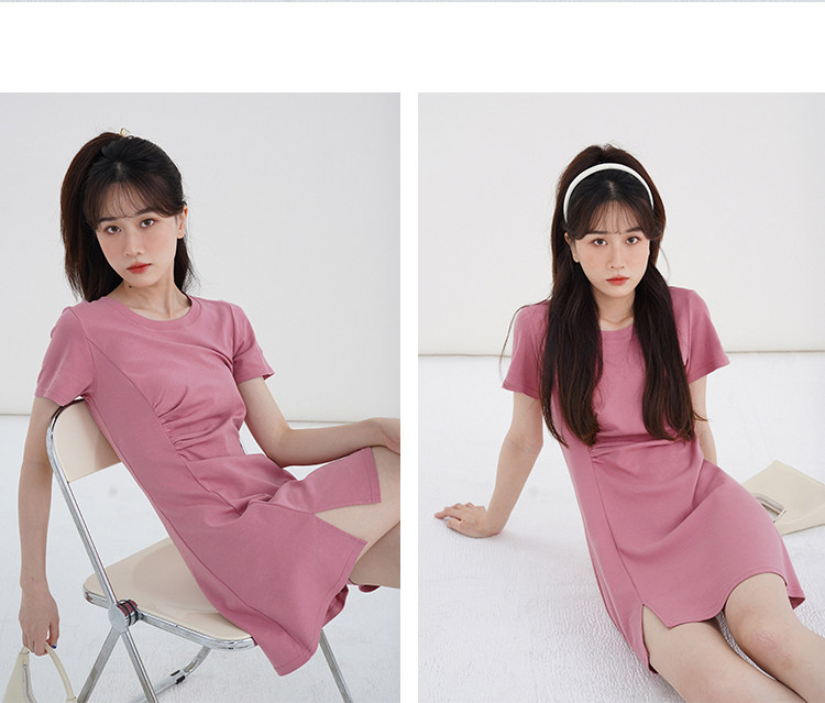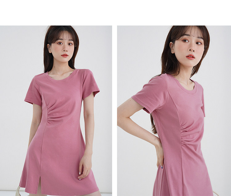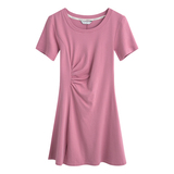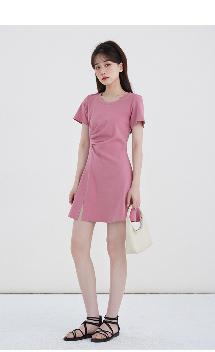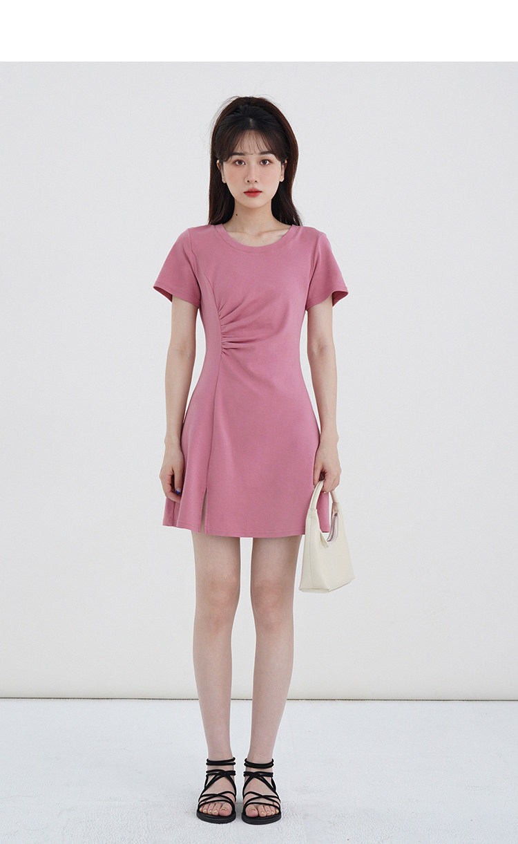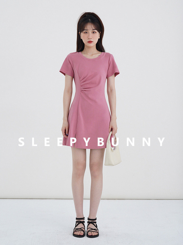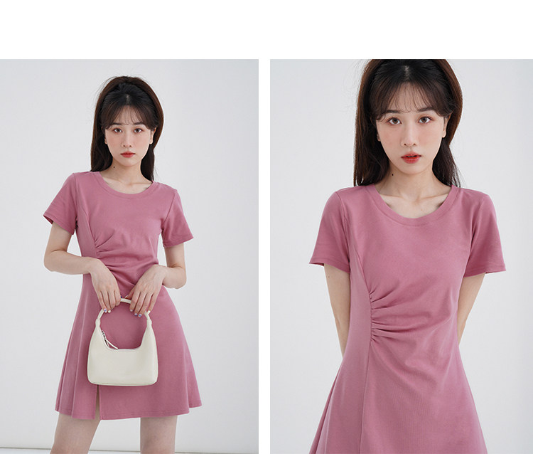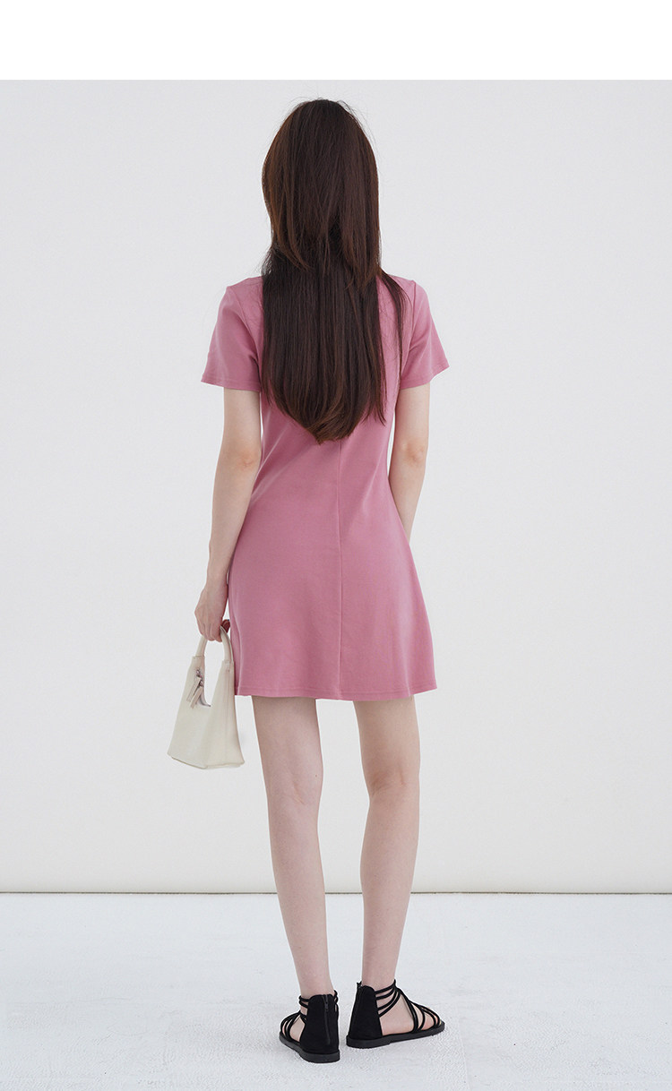 Розовое летнее платье, приталенный корсет с круглым воротником, мини-юбка