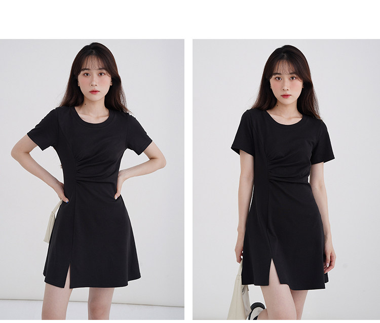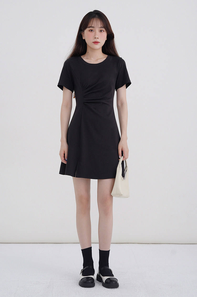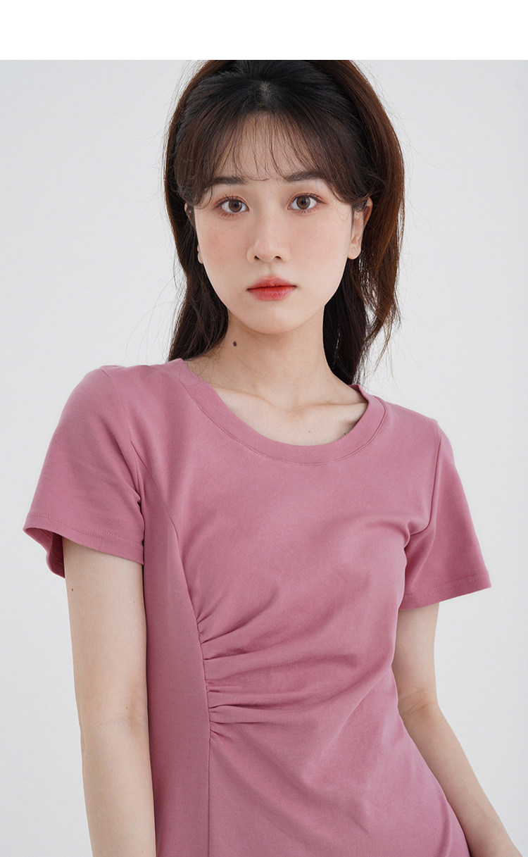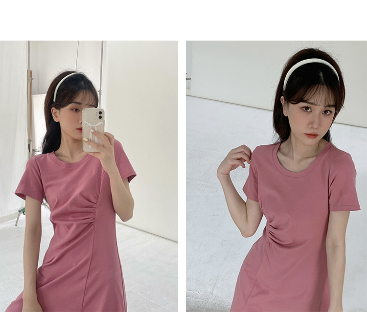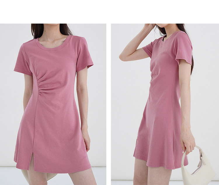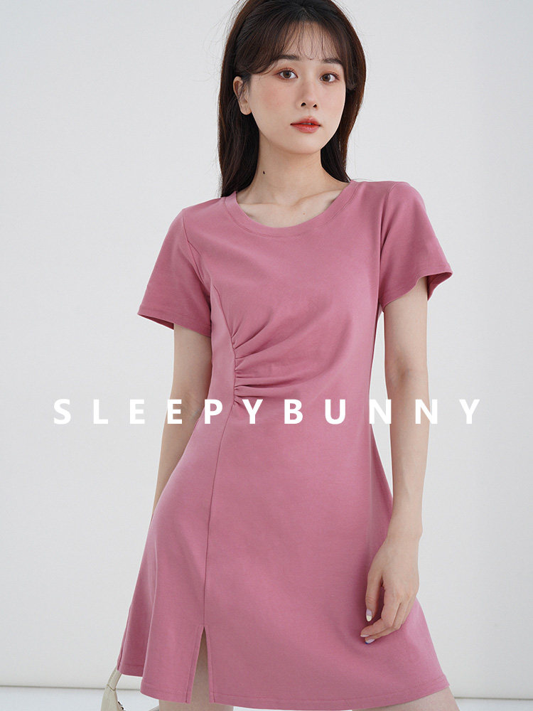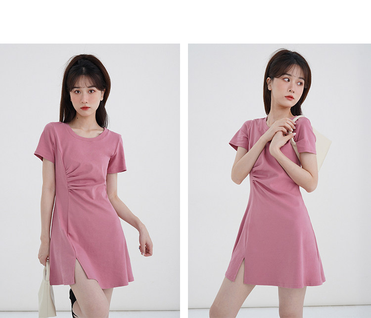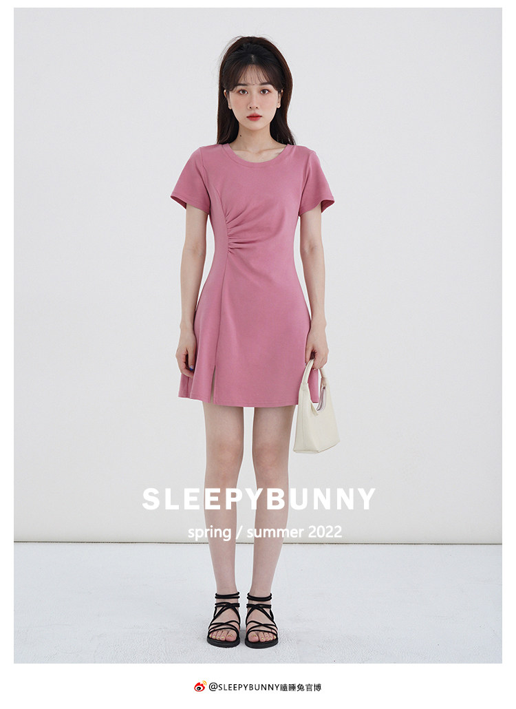 Розовое летнее платье, приталенный корсет с круглым воротником, мини-юбка