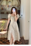 Приталенное платье, корсет, юбка, большой размер, подходит для полных девушек, квадратный вырез, цветочный принт, рукава фонарики