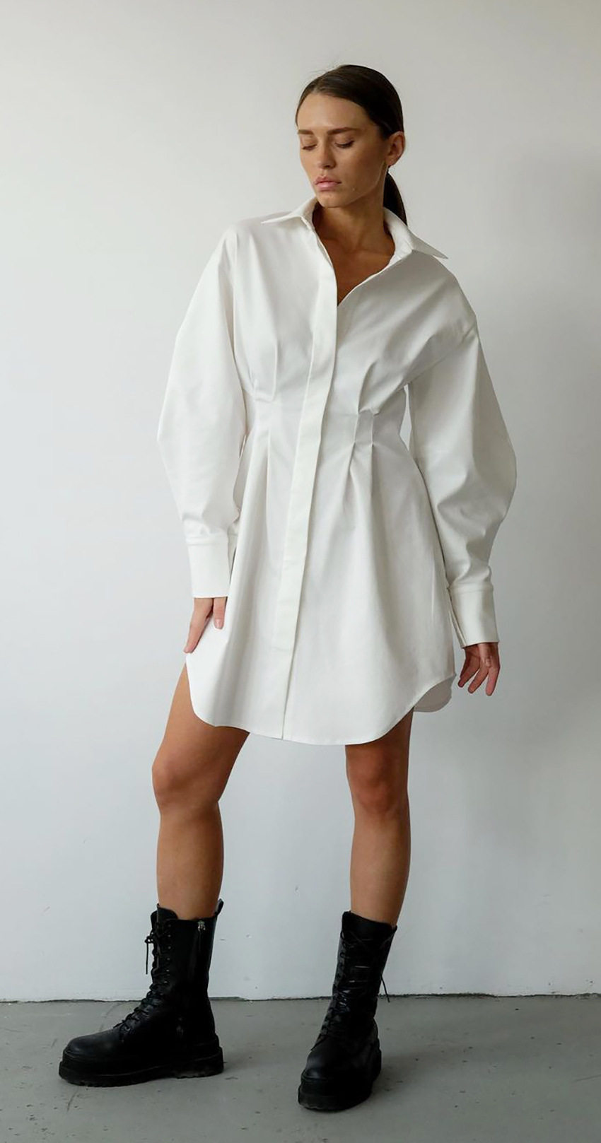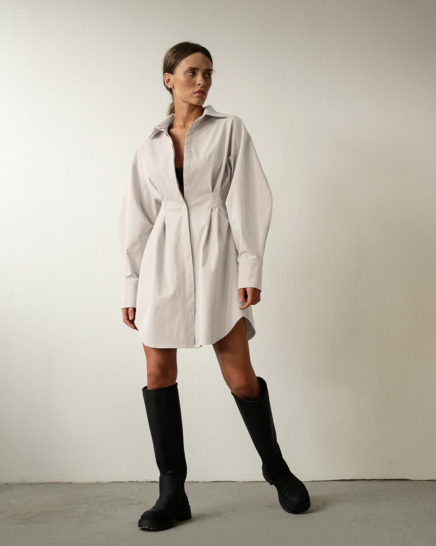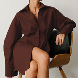 Летнее платье для бодикон, женские плиссированные платье рубашки офис мини -мини -