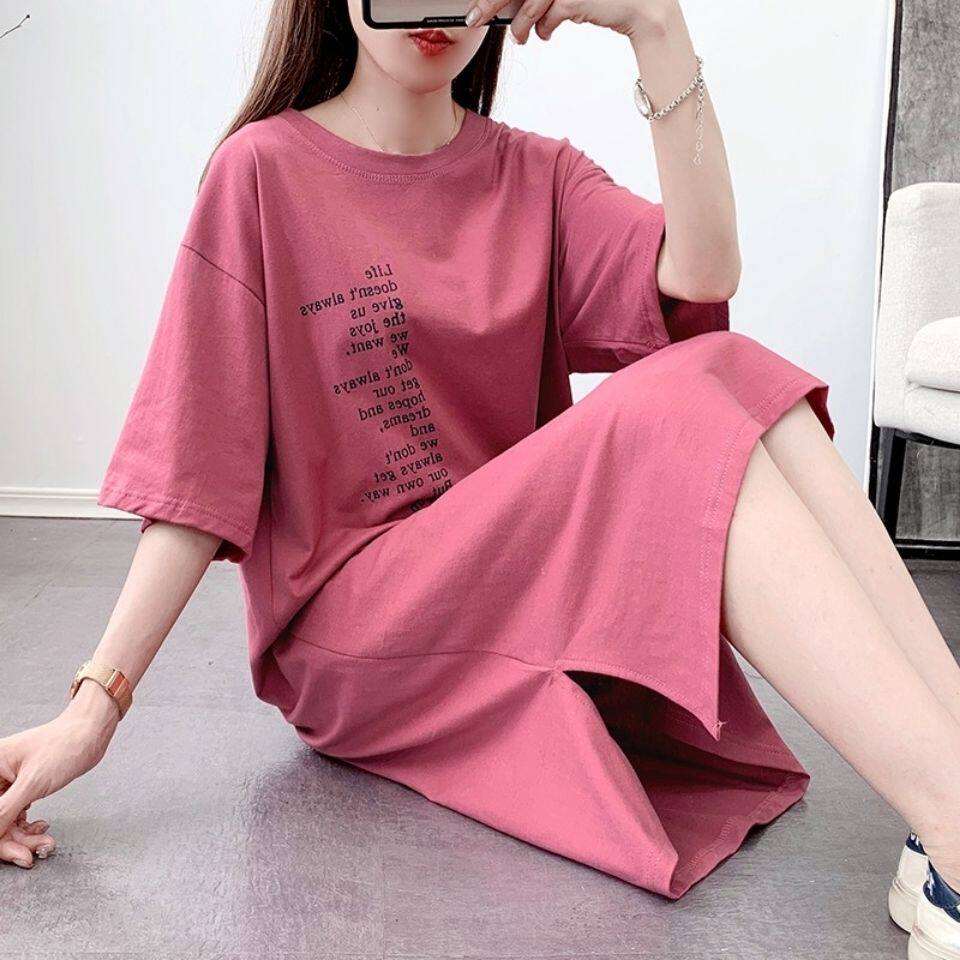 Хлопковая длинная летняя юбка, футболка с коротким рукавом, платье, 100% хлопок, оверсайз, в западном стиле