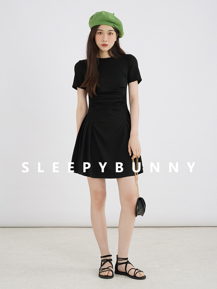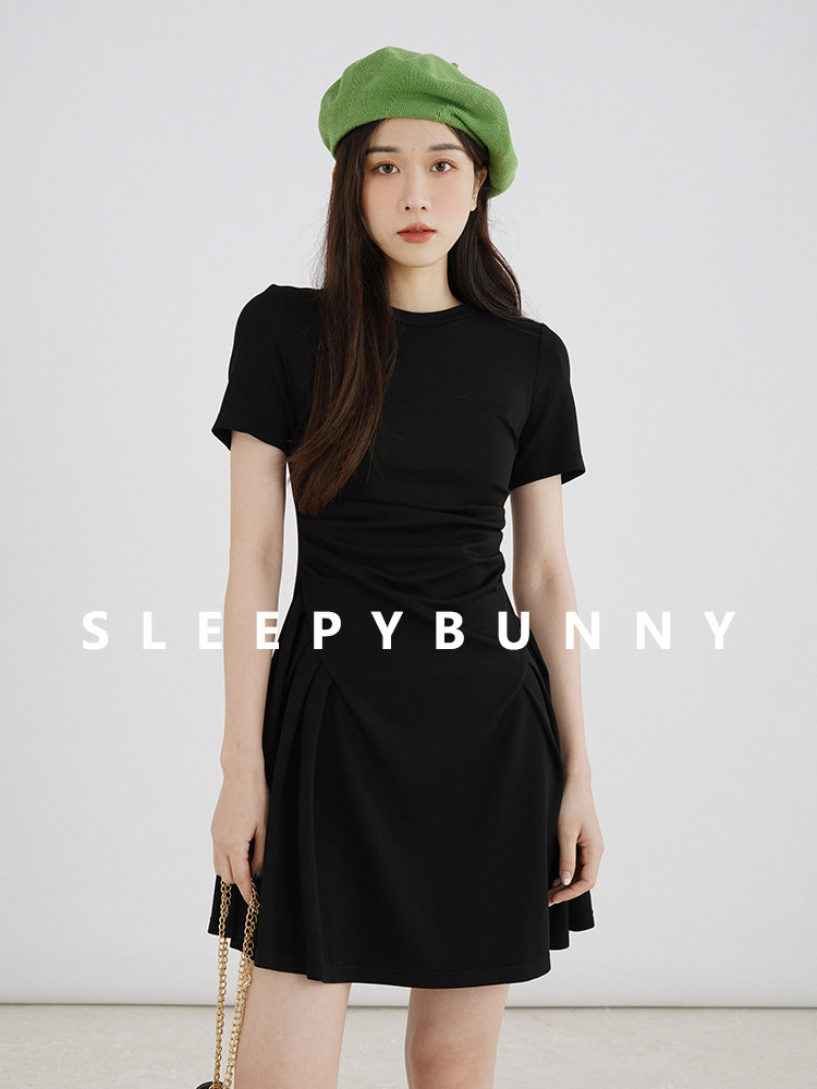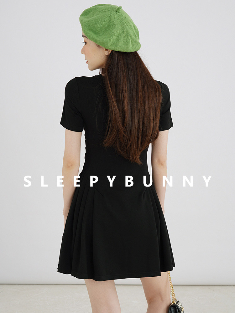 瞌睡兔 Корсет с круглым воротником, черное японское платье, короткий рукав