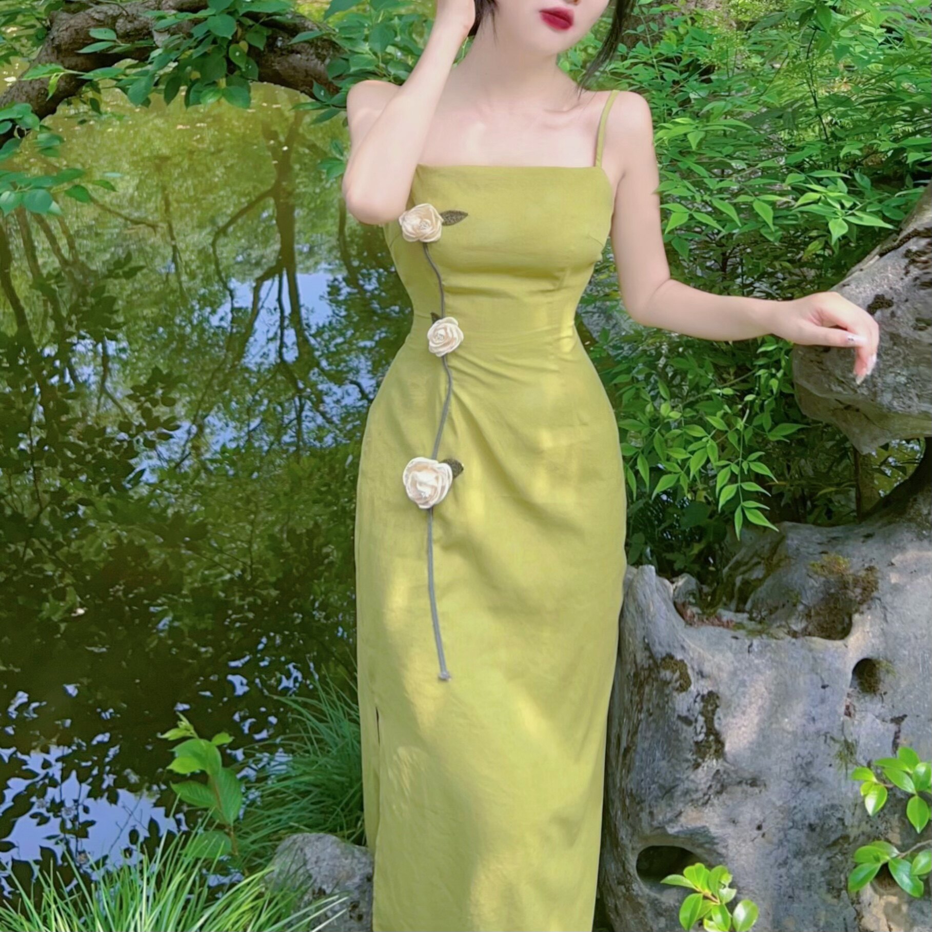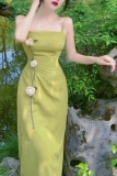 Ретро зеленый комплект, юбка, платье-комбинация, платье, китайский стиль, французский стиль, яркий броский стиль