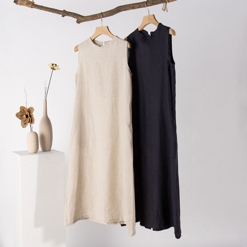 Японское платье без рукавов без рукавов, из хлопка и льна