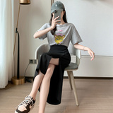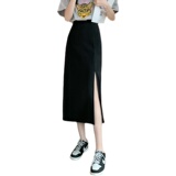 Черный летний костюм, тонкая длинная длинная юбка, подходит для подростков, коллекция 2023, средней длины, высокая талия, А-силуэт