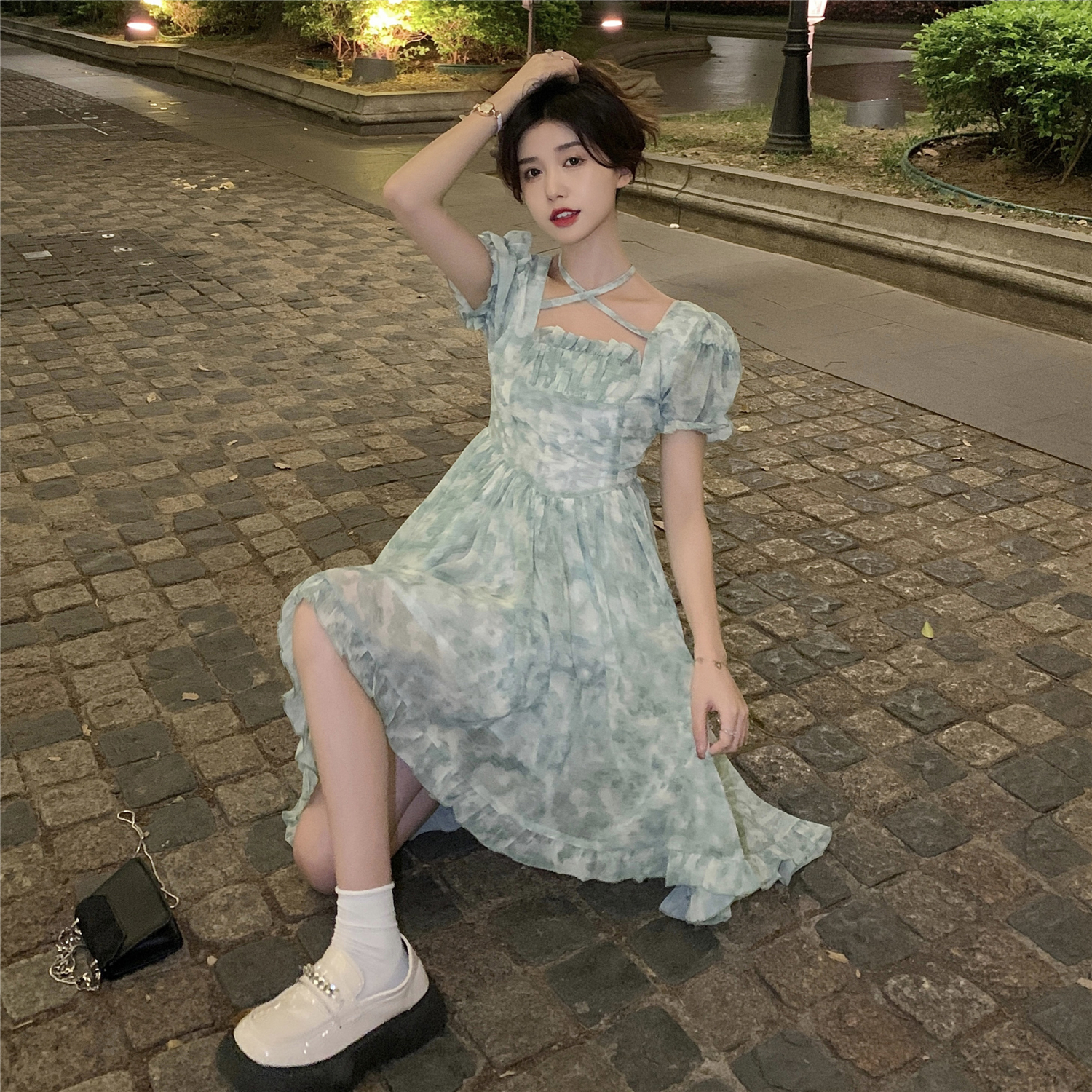 Летнее платье, корсет, французский стиль, квадратный вырез