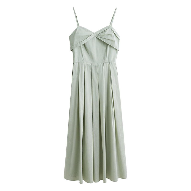 Мятное зеленое летнее платье, приталенная юбка в складку, французский стиль