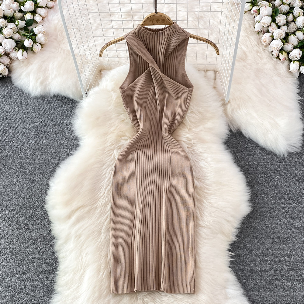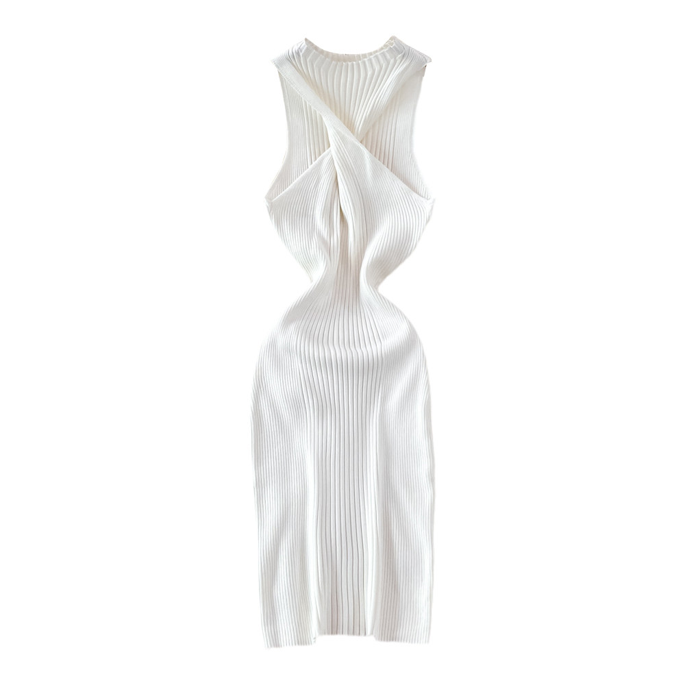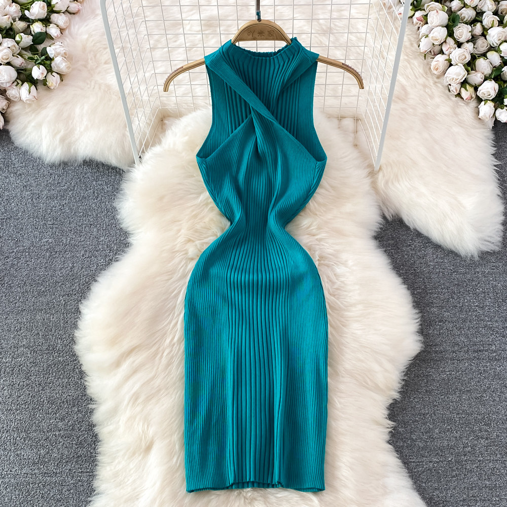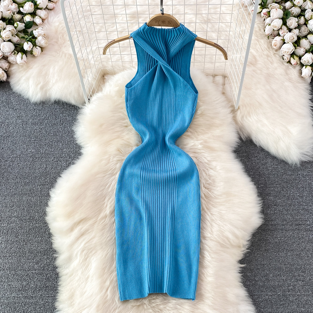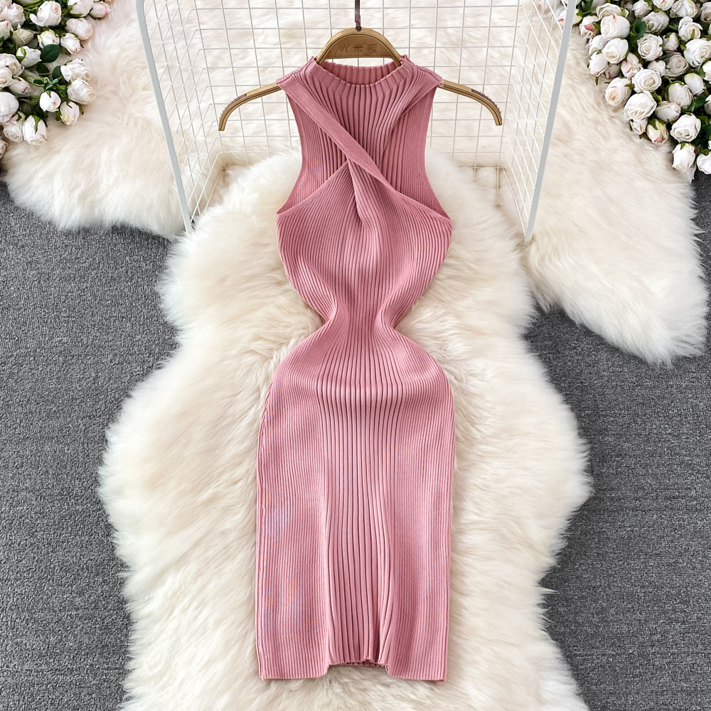 Летнее платье без рукавов, сексуальная трикотажная юбка без рукавов, в обтяжку, с акцентом на бедрах