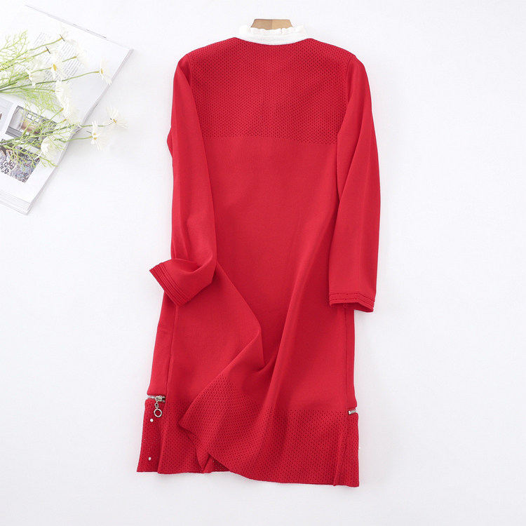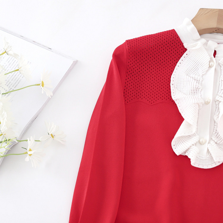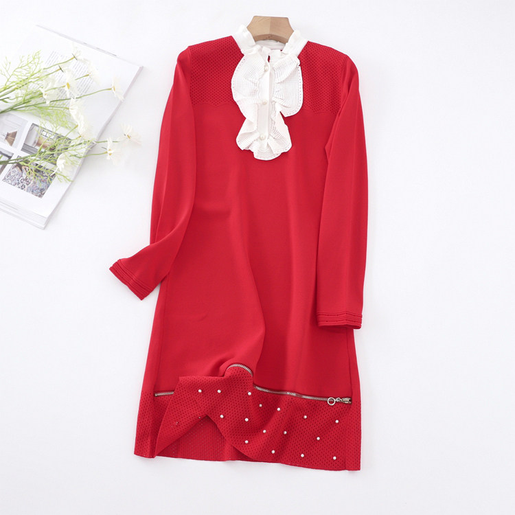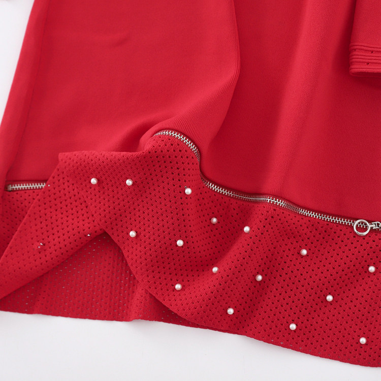 Красный трикотажный милый лонгслив с молнией, юбка, французский стиль, на молнии