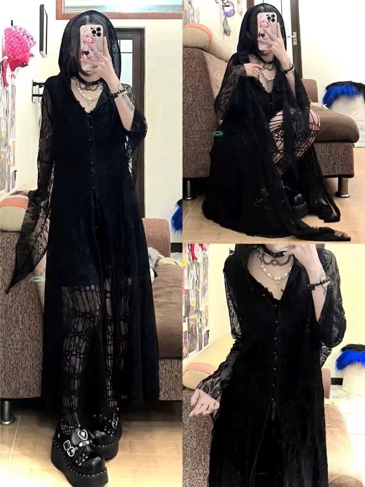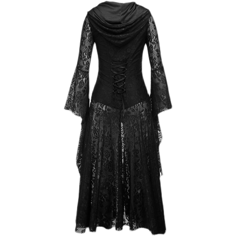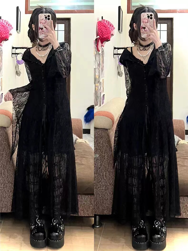 Кружевное платье с капюшоном, застежка спереди, V-образный вырез