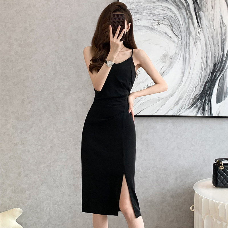 Черное летнее платье, юбка, корсет, в западном стиле, изысканный стиль, V-образный вырез