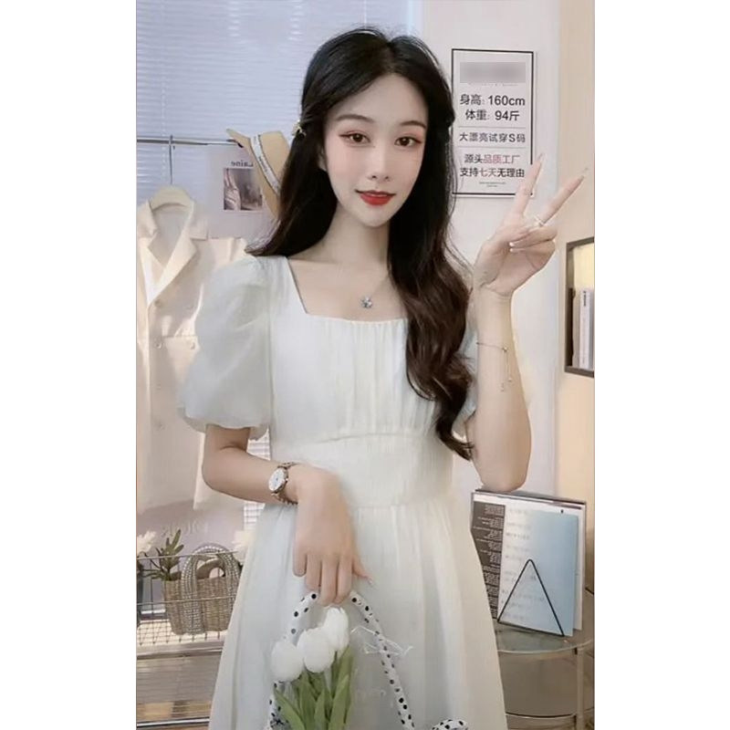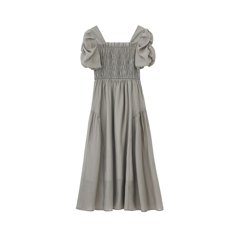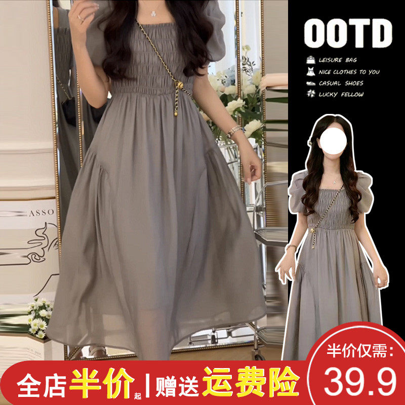 Приталенное платье, корсет, шифоновая летняя длинная юбка, рукава фонарики, квадратный вырез, французский стиль