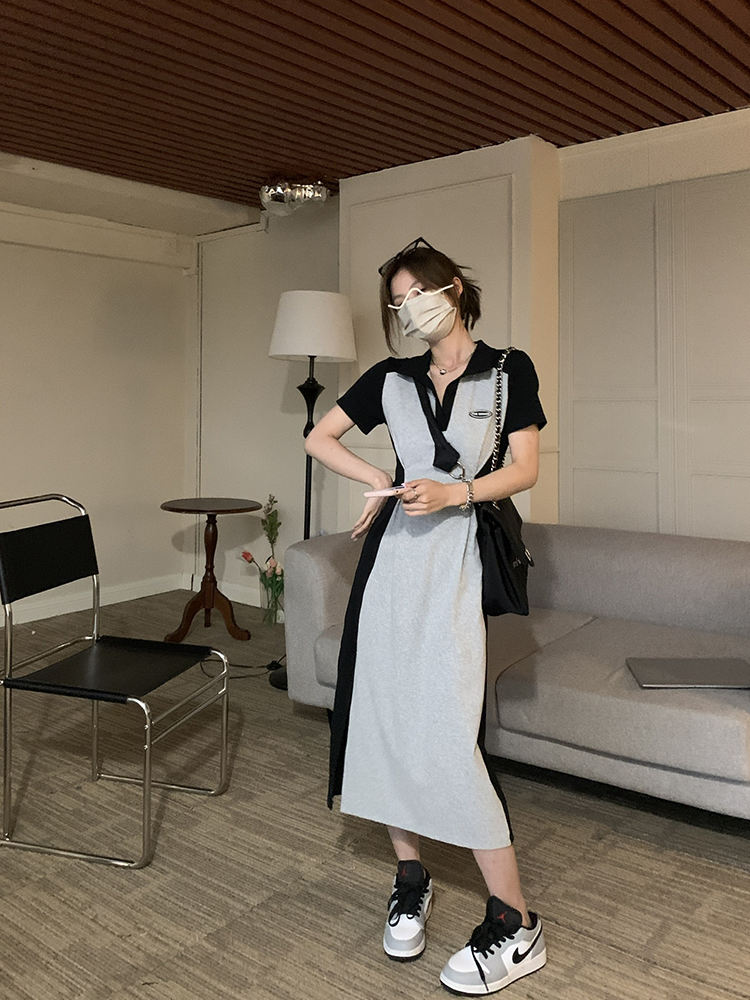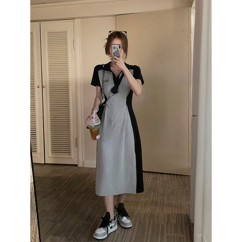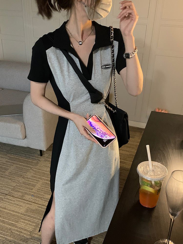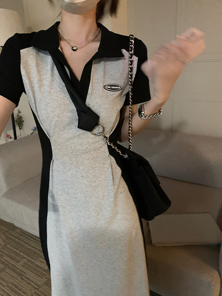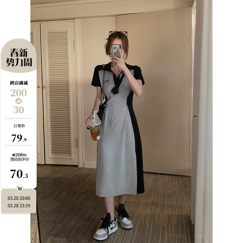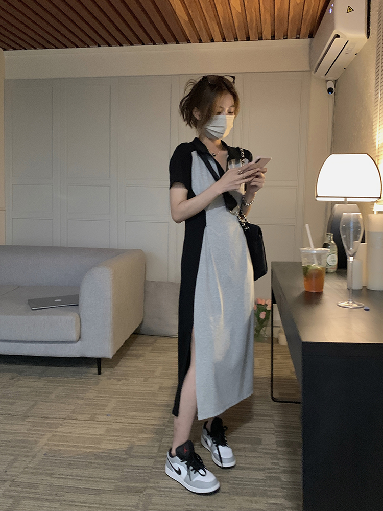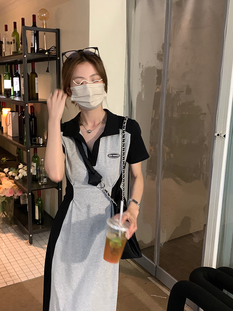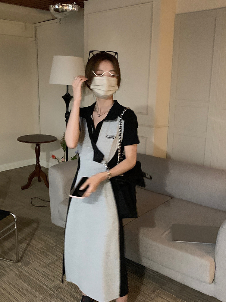 乌77 Дизайнерское платье для контуринга, приталенный длинный корсет для отдыха, тени, юбка, воротник поло, по фигуре, тренд сезона
