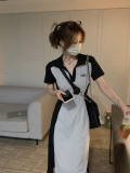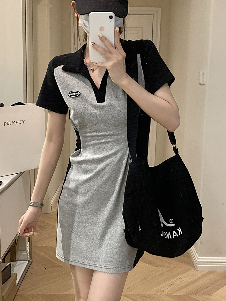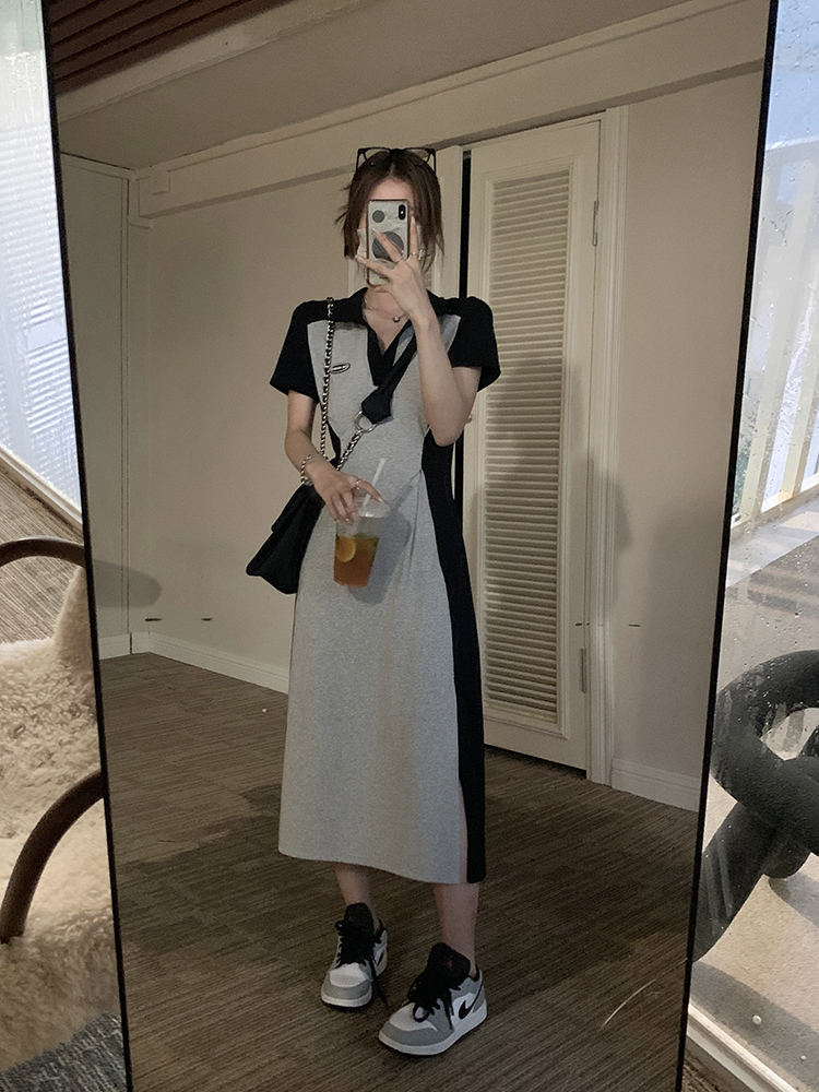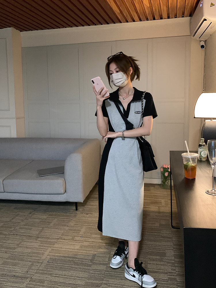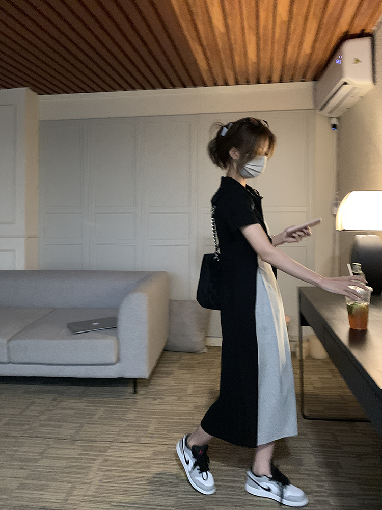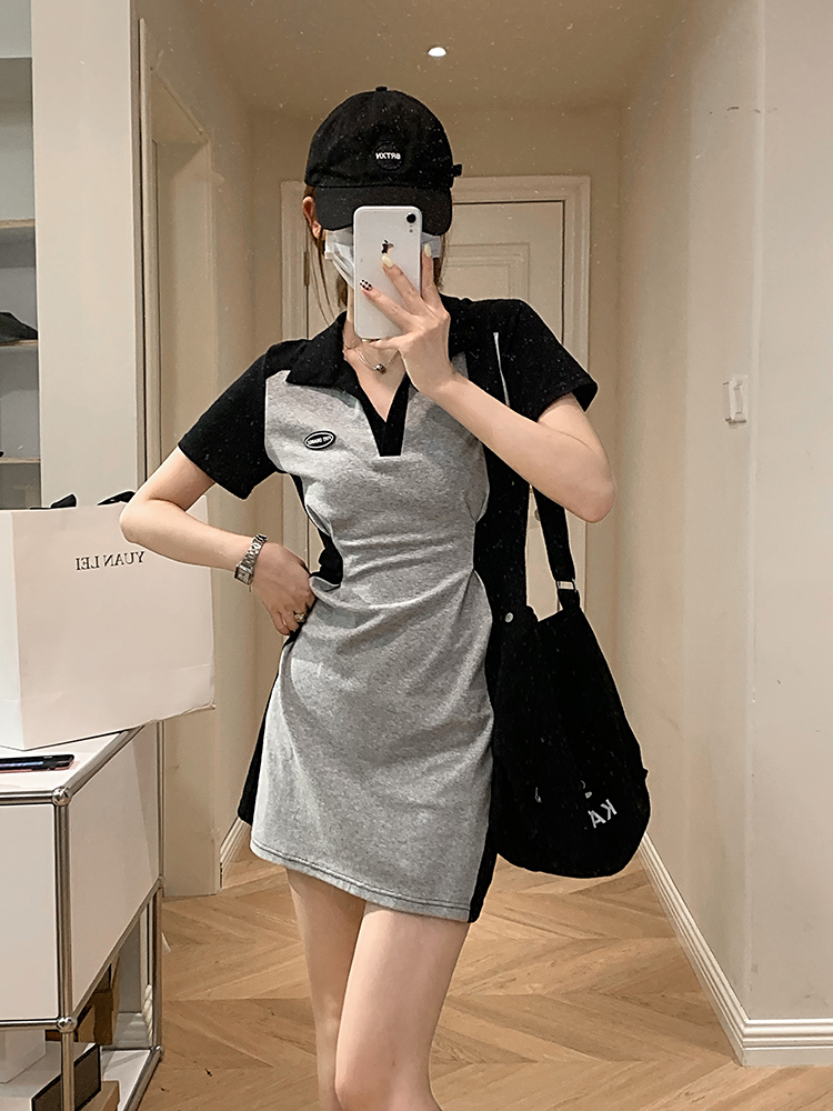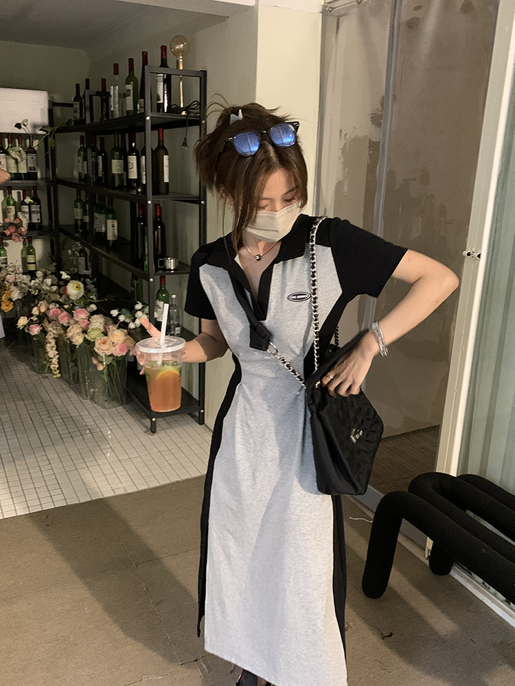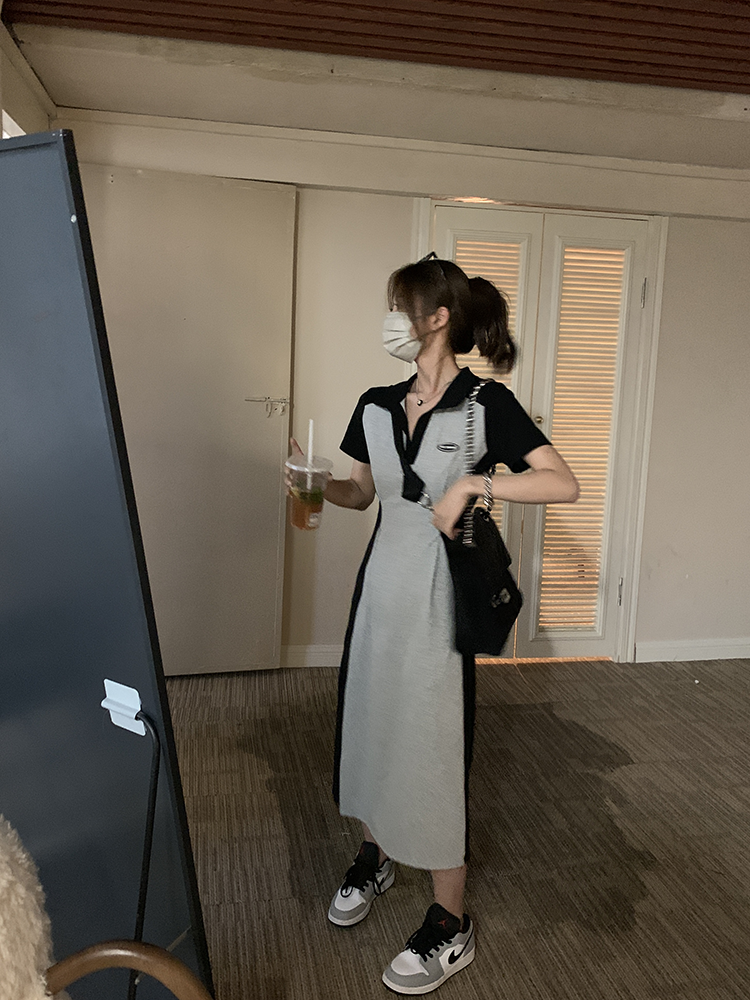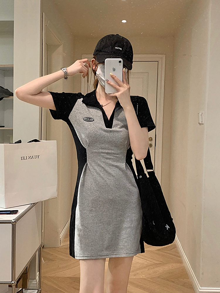 乌77 Дизайнерское платье для контуринга, приталенный длинный корсет для отдыха, тени, юбка, воротник поло, по фигуре, тренд сезона