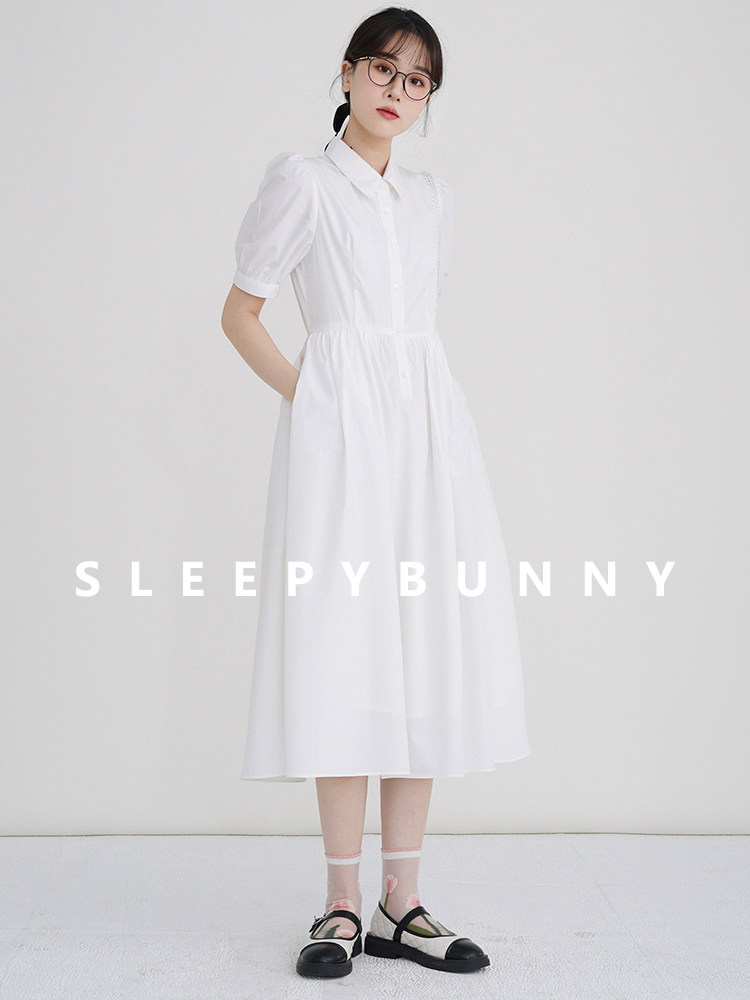瞌睡兔 Белая летняя рубашка, ретро юбка, милый приталенный корсет, платье