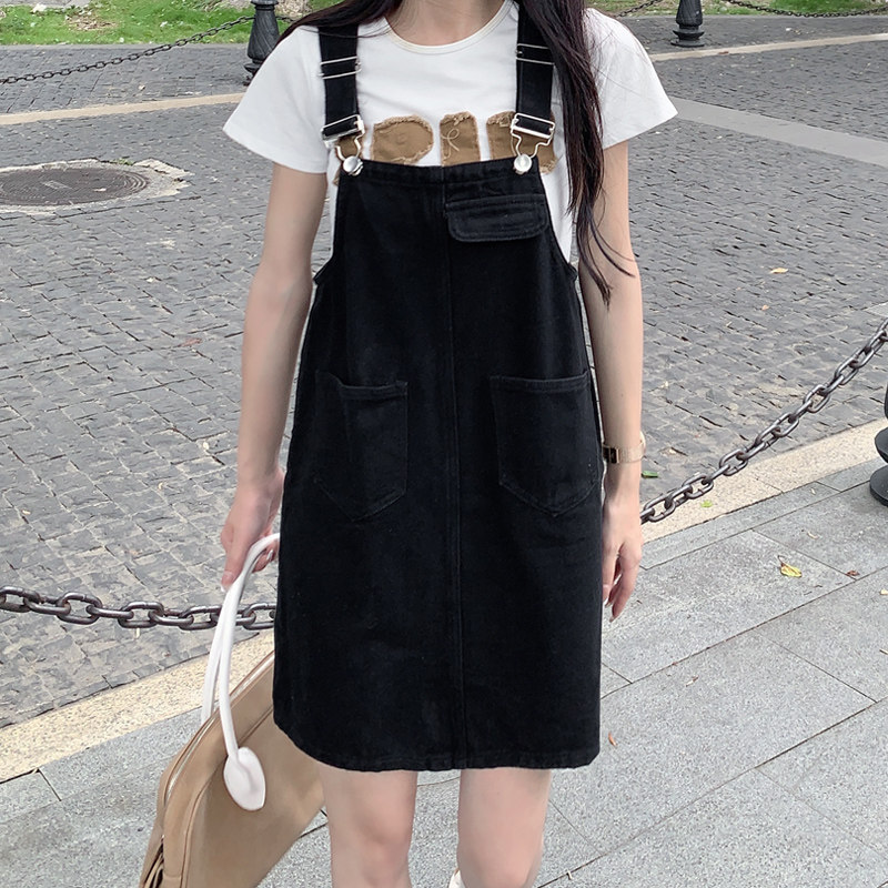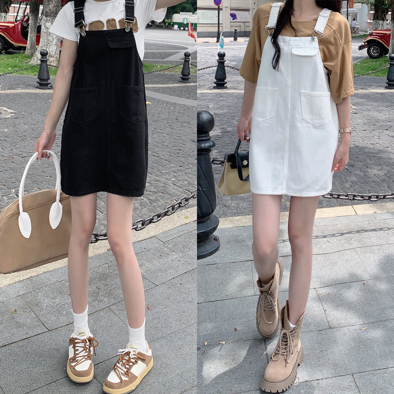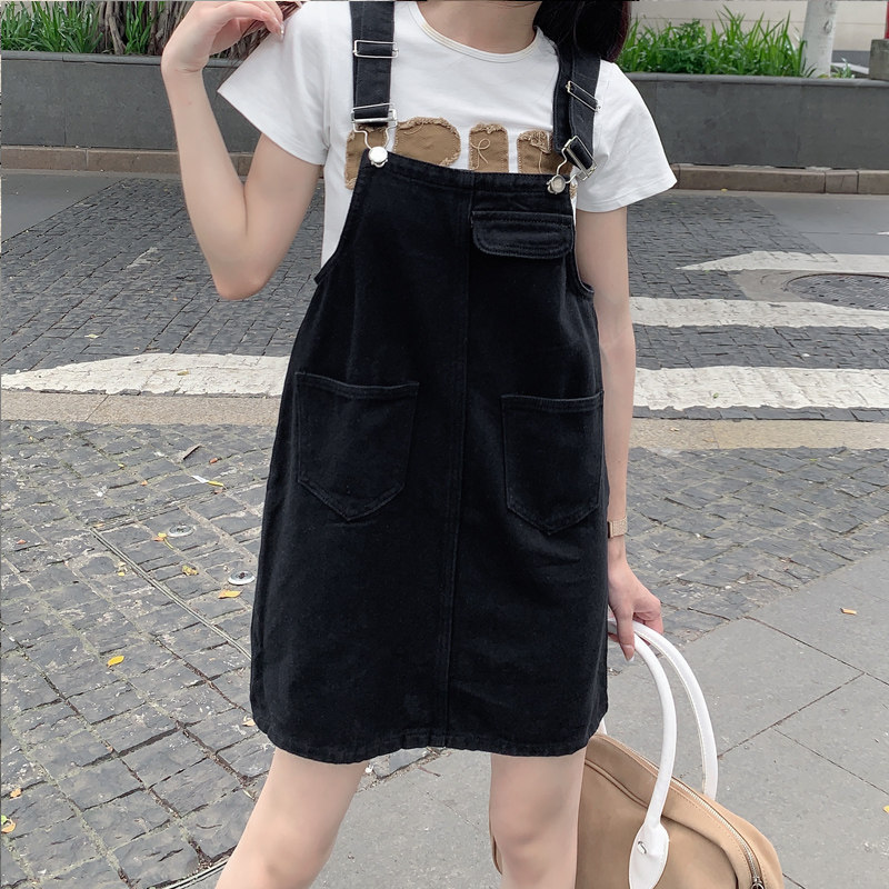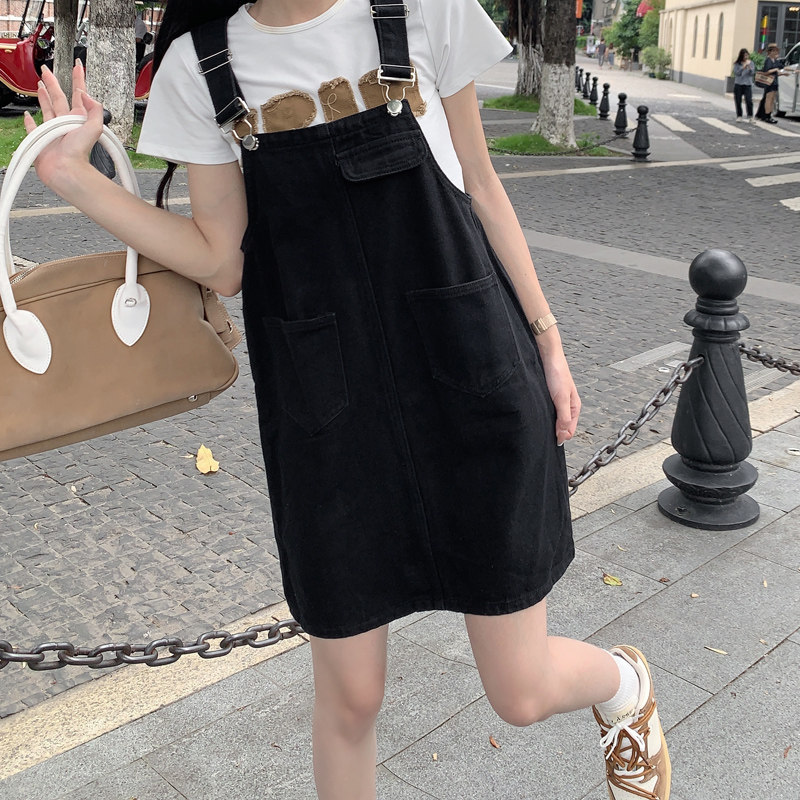 Джинсовый сарафан, юбка, летняя мини-юбка для школьников и студентов, платье, в корейском стиле, свободный крой, большой размер