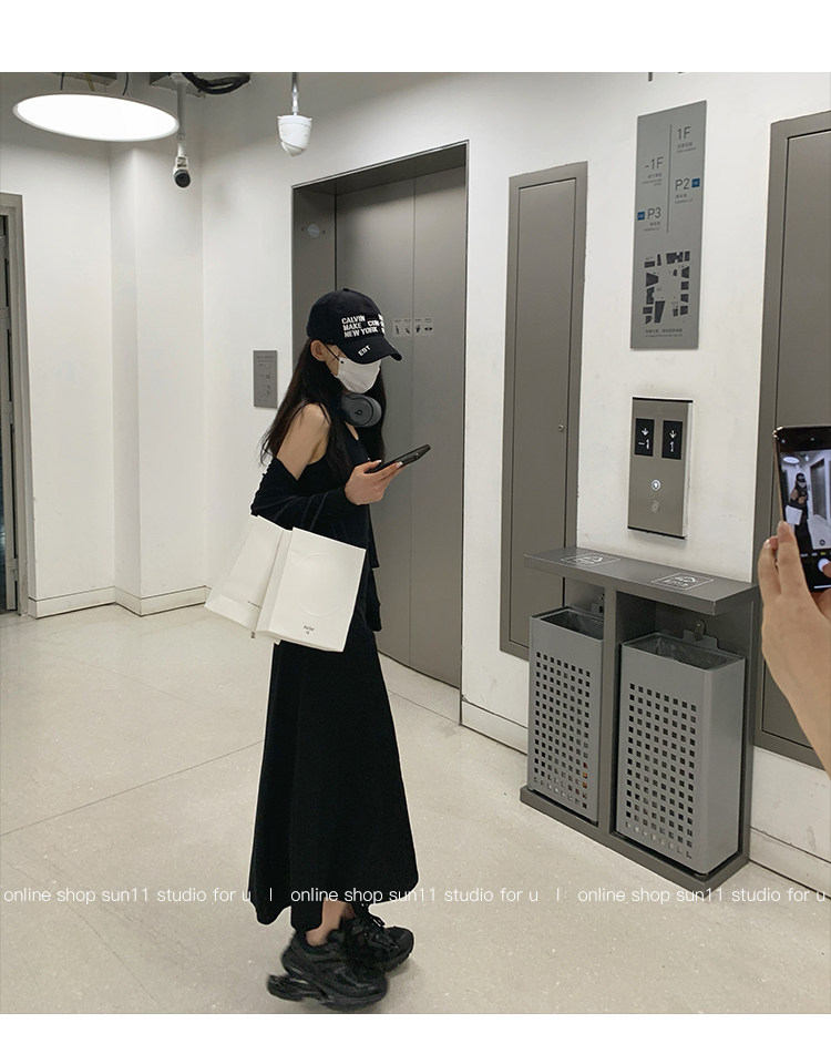 Черное осеннее платье, длинная юбка, корсет, изысканный стиль, классическая длина