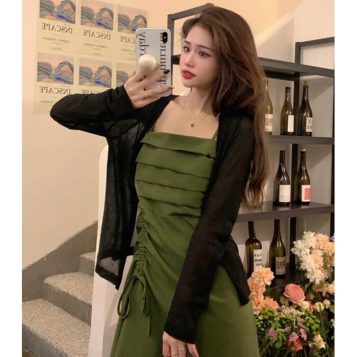 | Цвет: | Авокадо зеленая юбка из камизола, Черный кардиган |