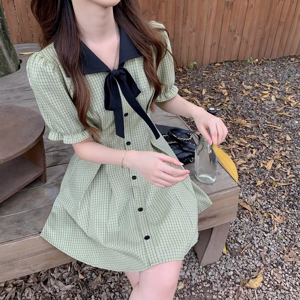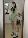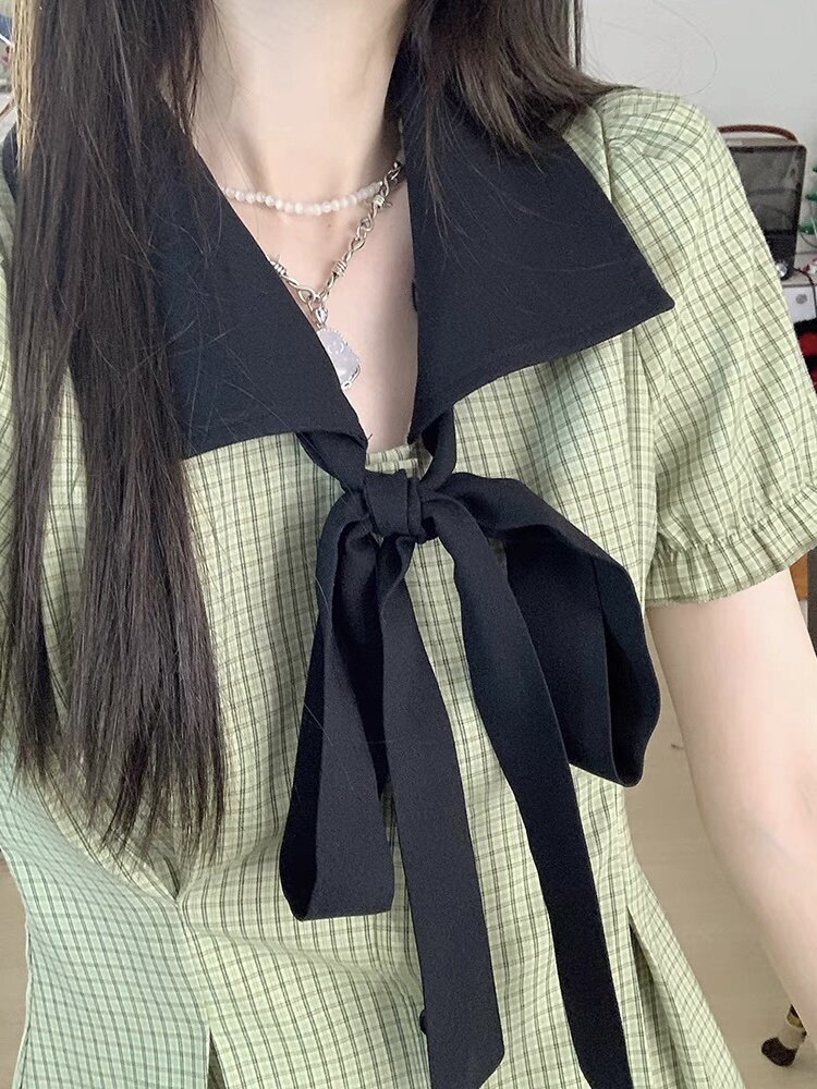 Рубашка, летняя юбка, платье с коротким рукавом с бантиком, воротник поло, коллекция 2022, французский стиль