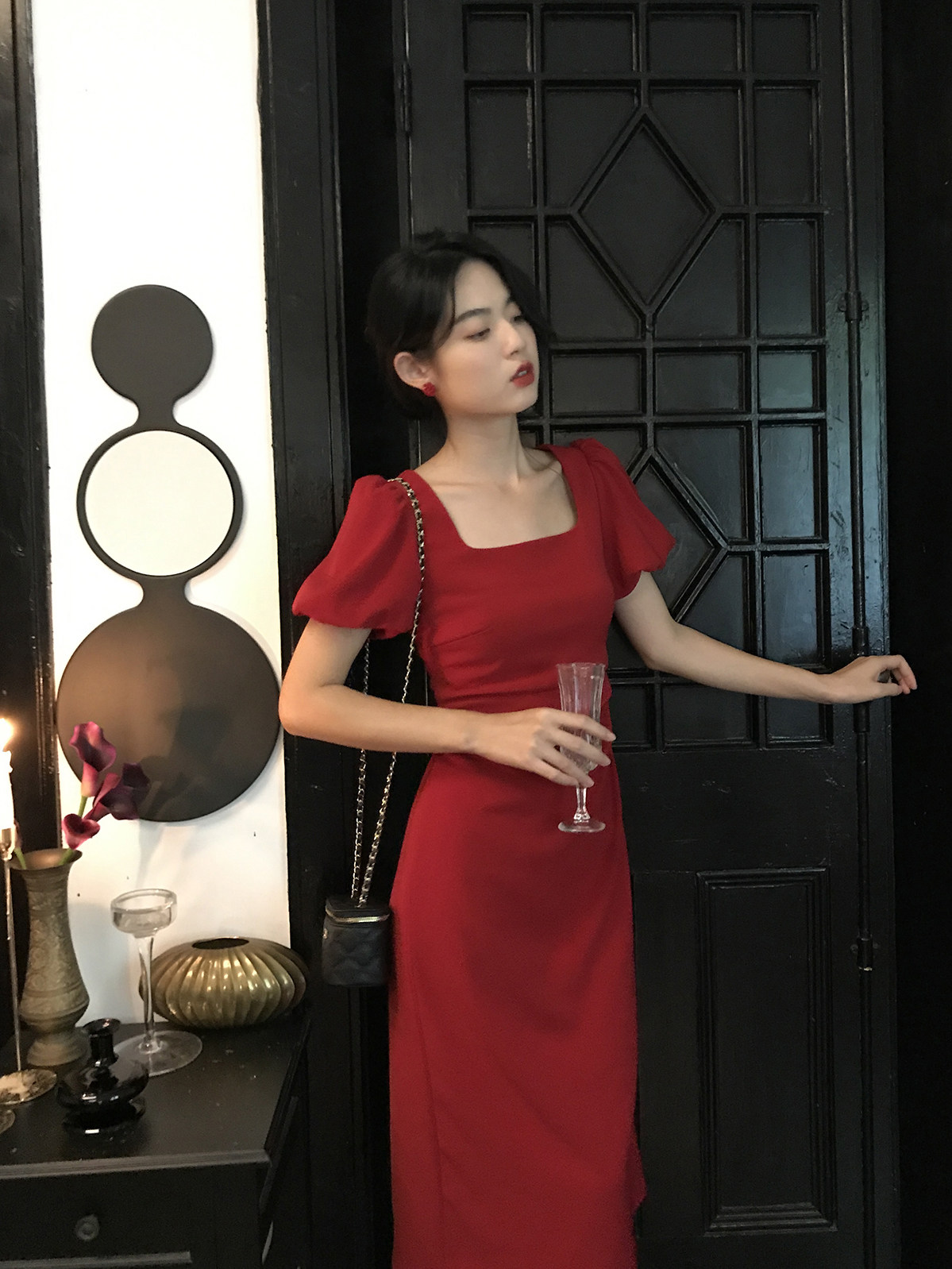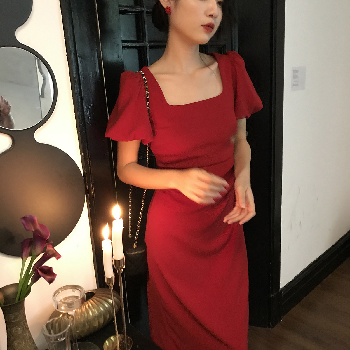 Ретро платье, приталенная юбка, корсет, французский стиль, квадратный вырез, яркий броский стиль