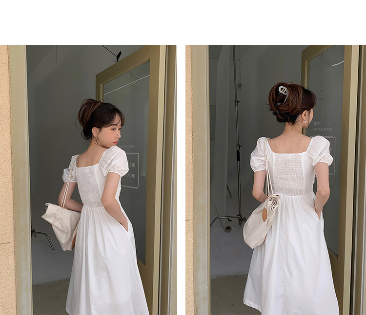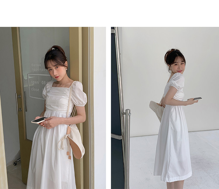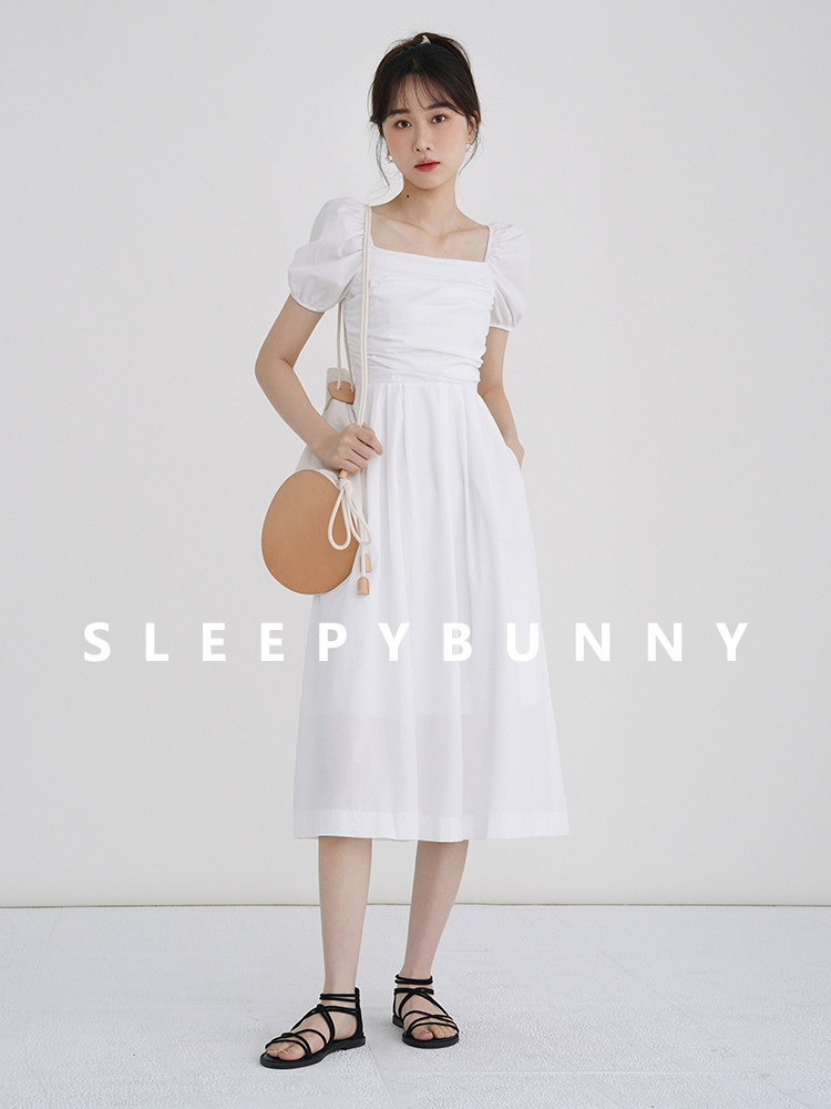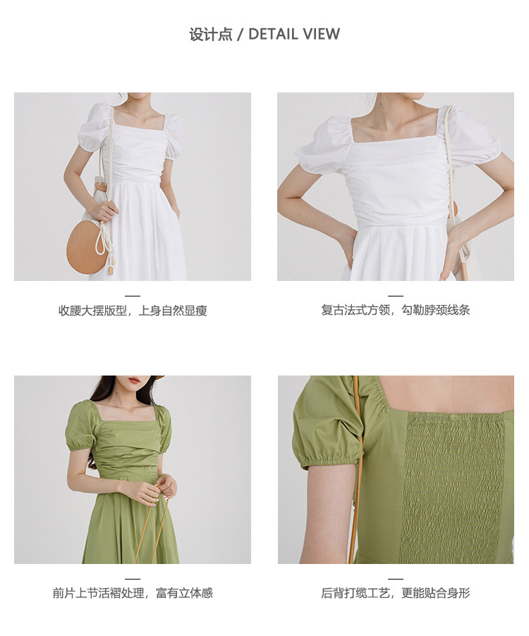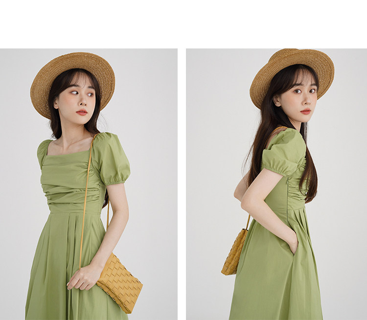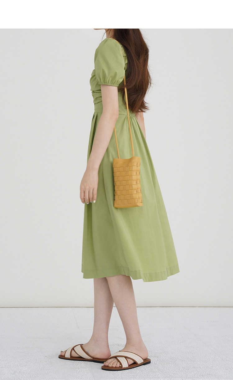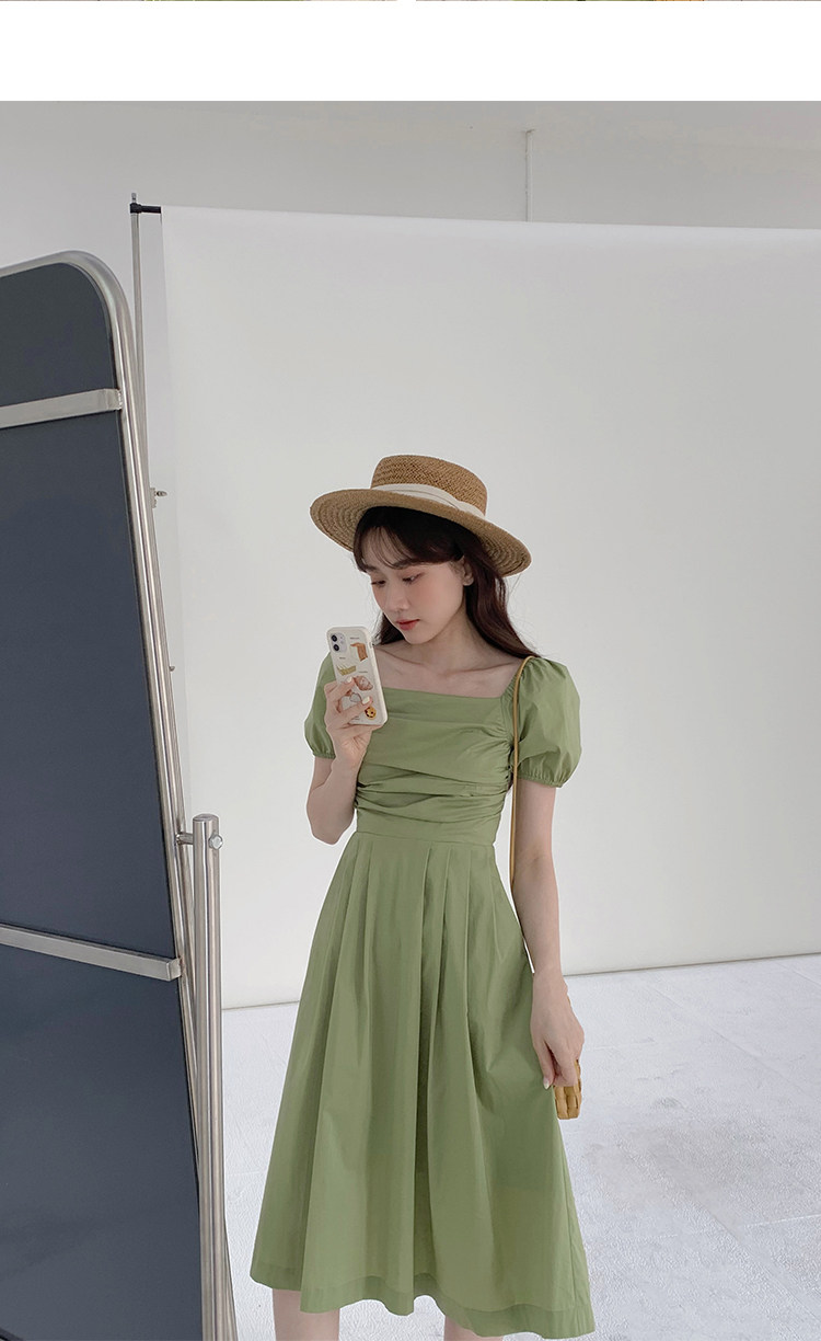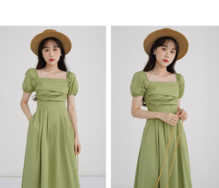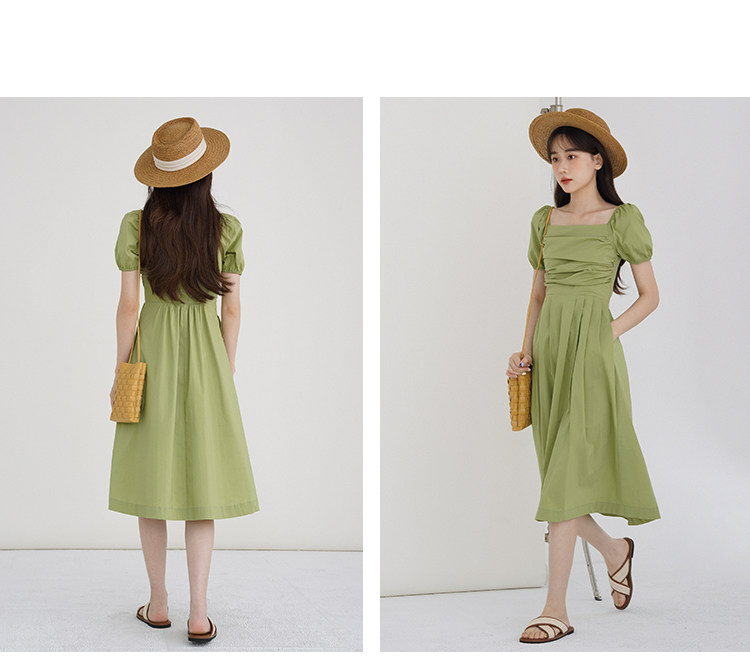 瞌睡兔 Зеленая длинная юбка, квадратный вырез, рукава фонарики, французский стиль