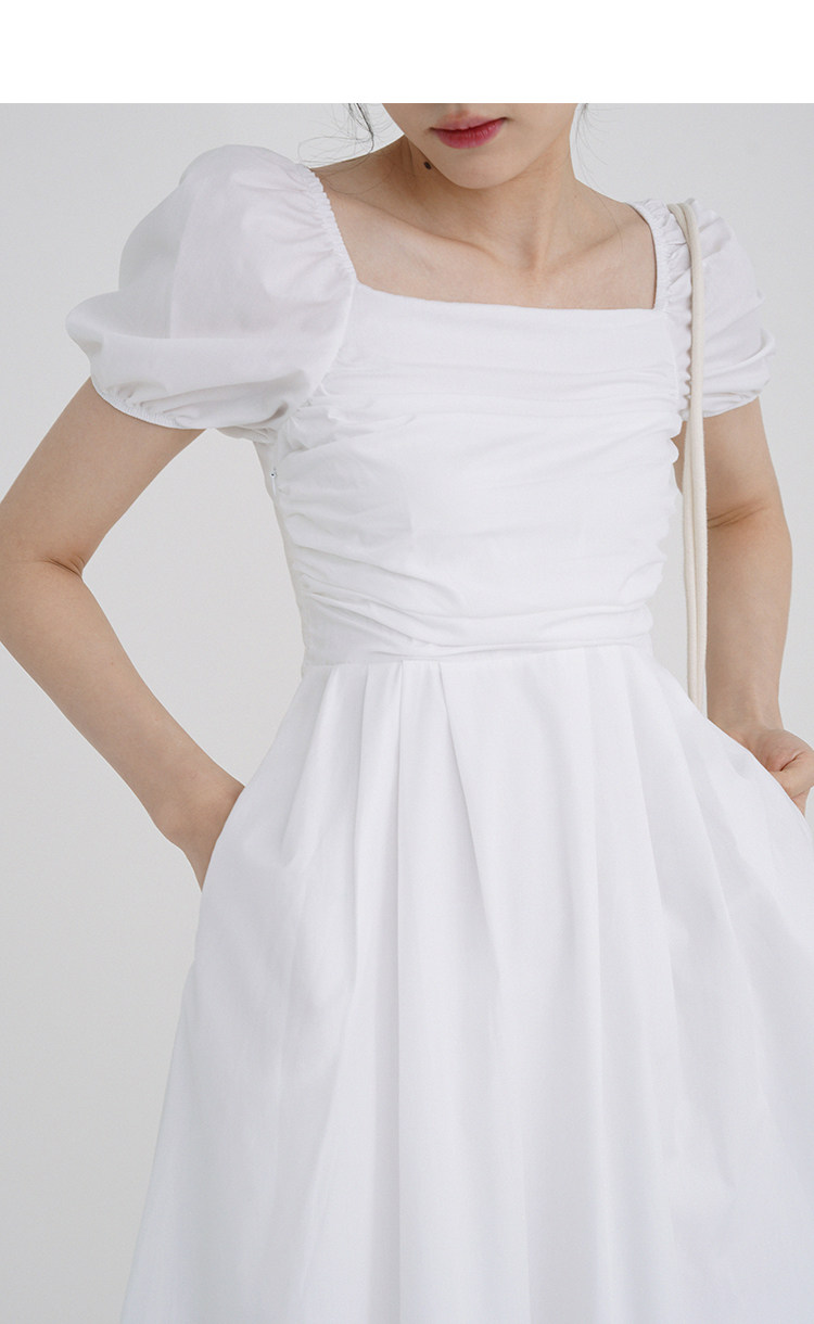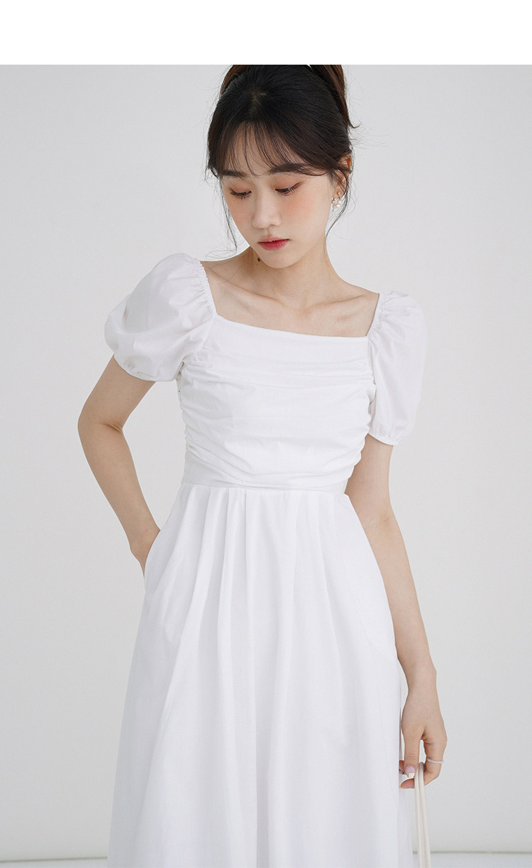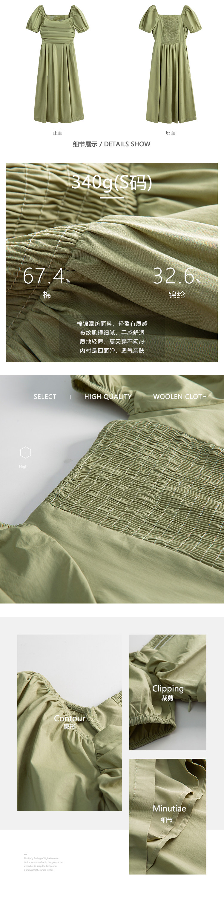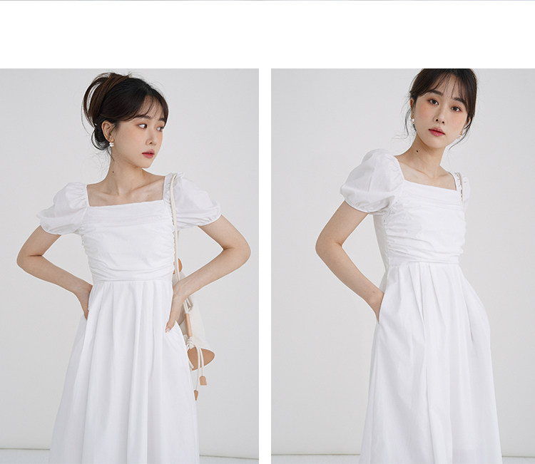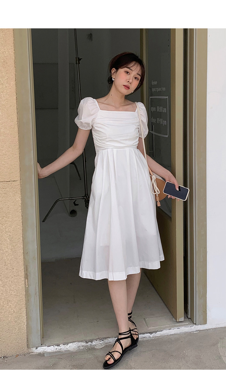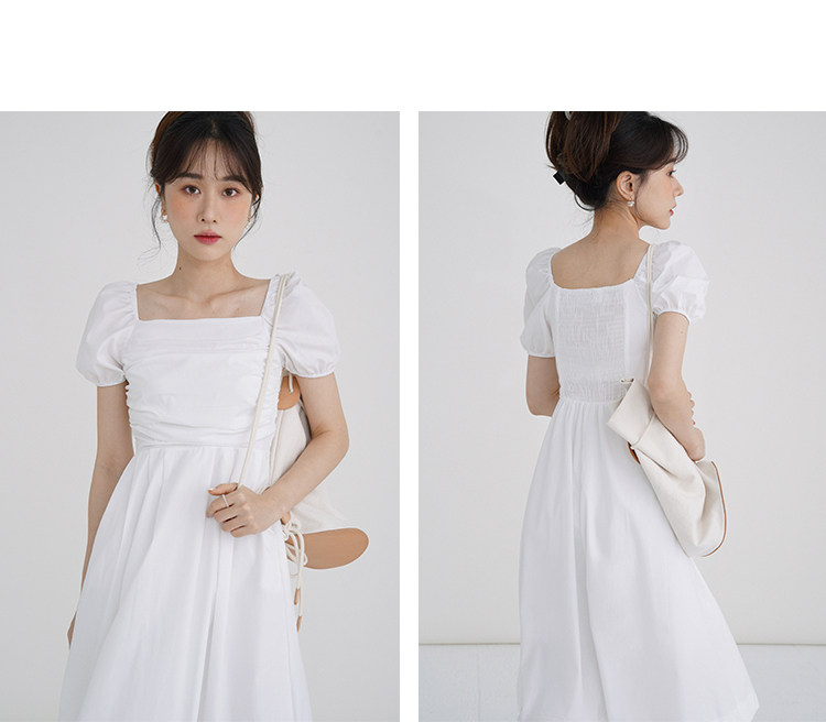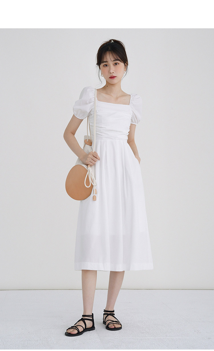 瞌睡兔 Зеленая длинная юбка, квадратный вырез, рукава фонарики, французский стиль