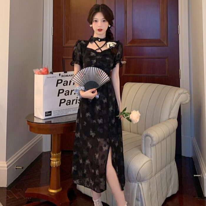 Летнее ретро платье, корсет, ципао, юбка, китайский стиль, в цветочек, большой размер, короткий рукав