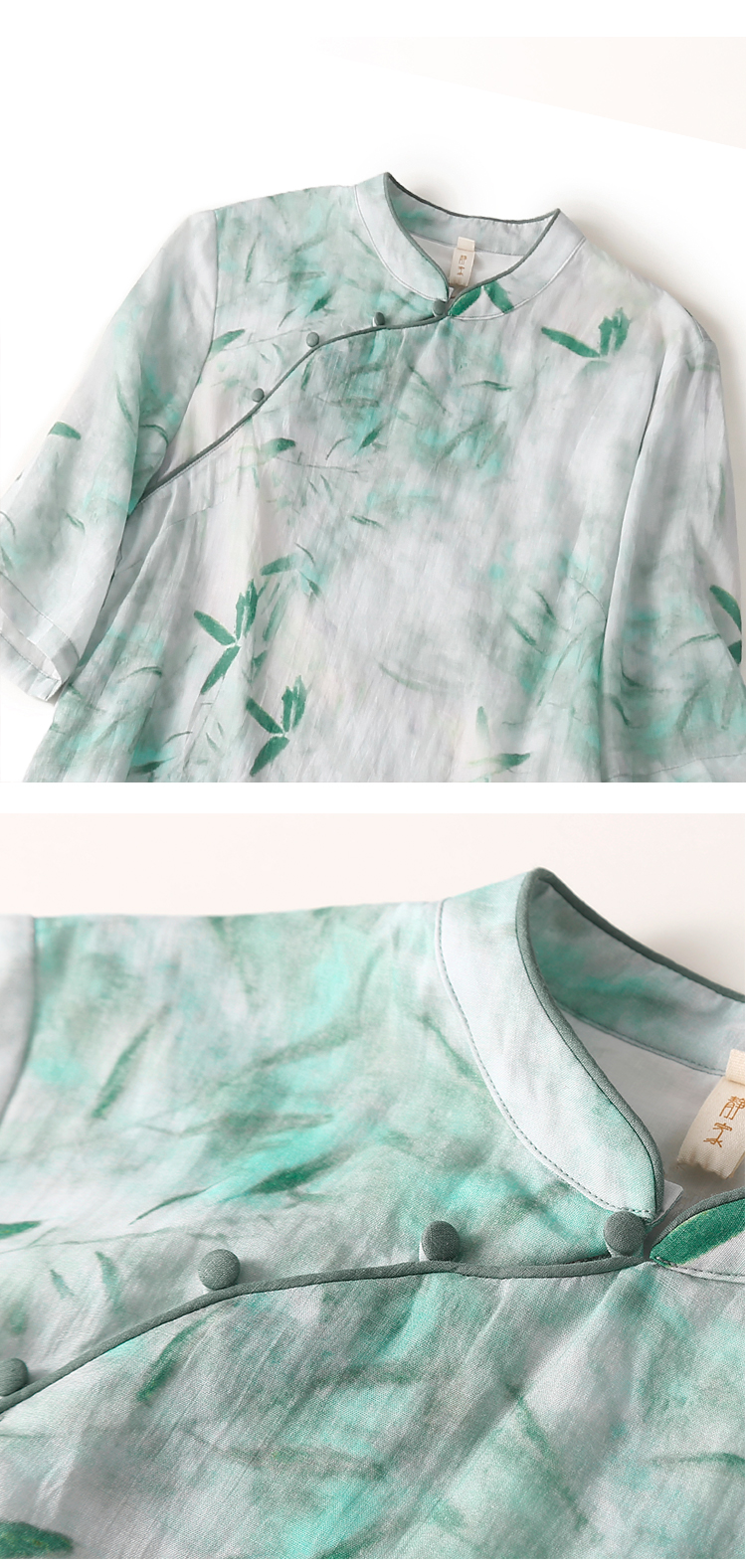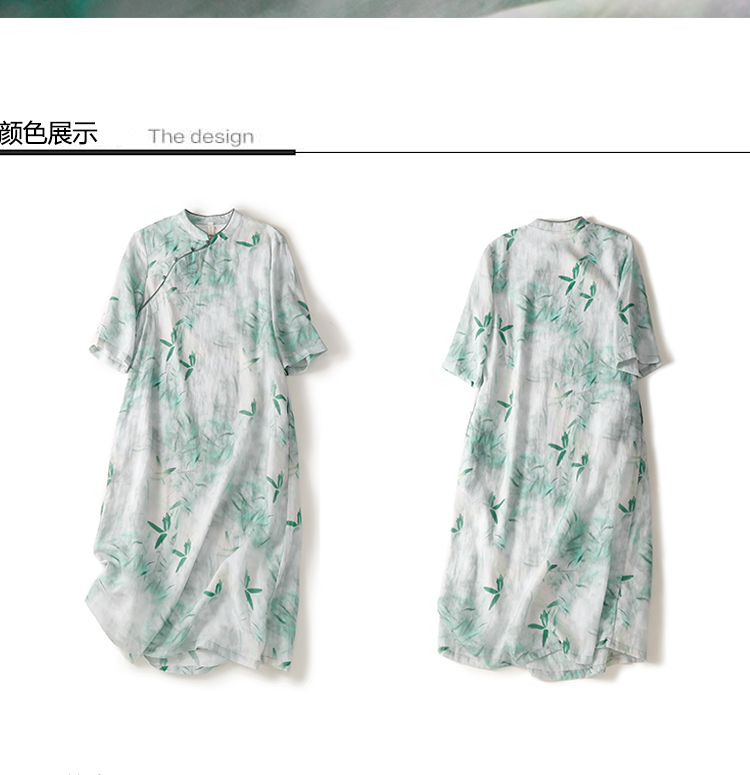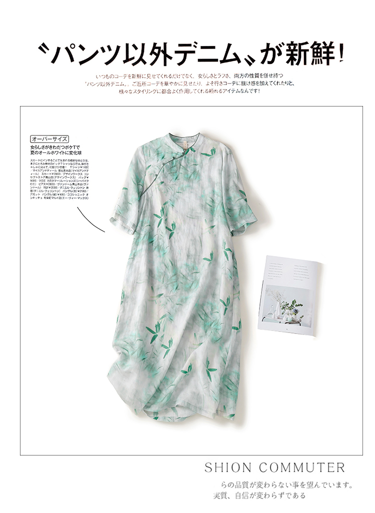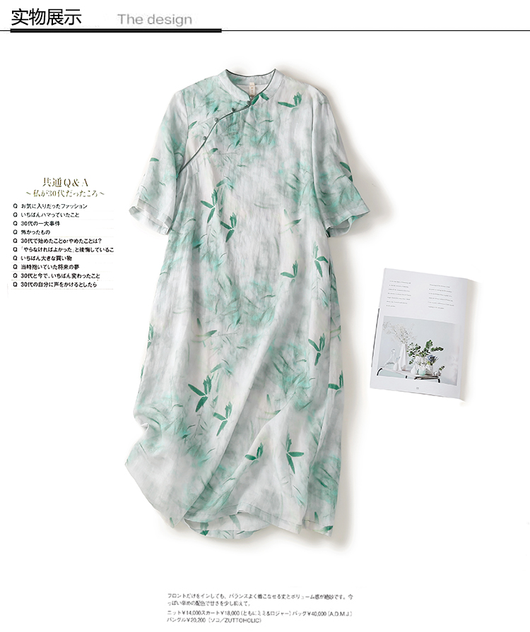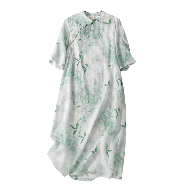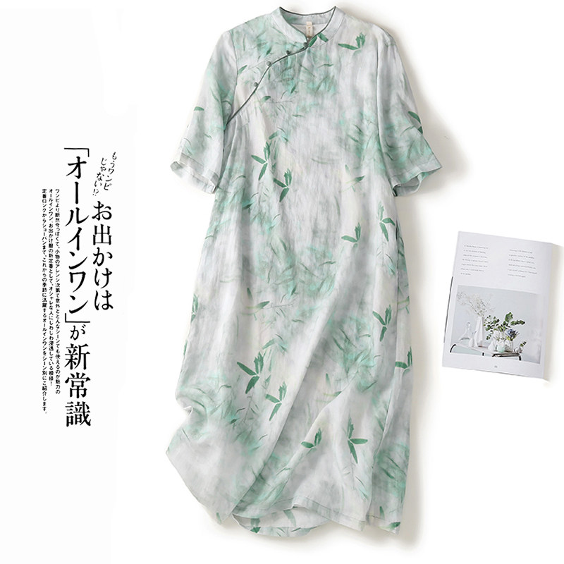Ципао, ретро юбка, платье, китайский стиль, из хлопка и льна, свободный крой