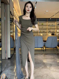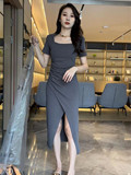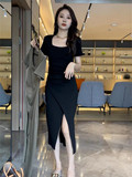 Длинная футболка, летнее платье, детская юбка, классическая длина, коллекция 2023, квадратный вырез, облегающий крой, подходит для подростков