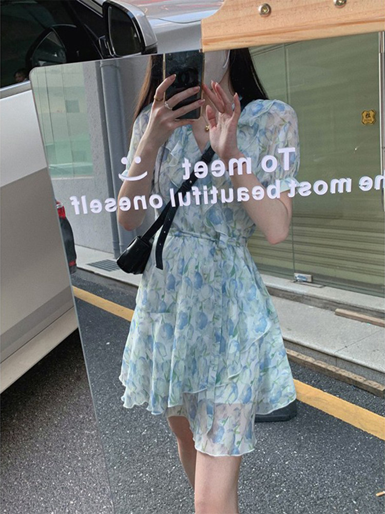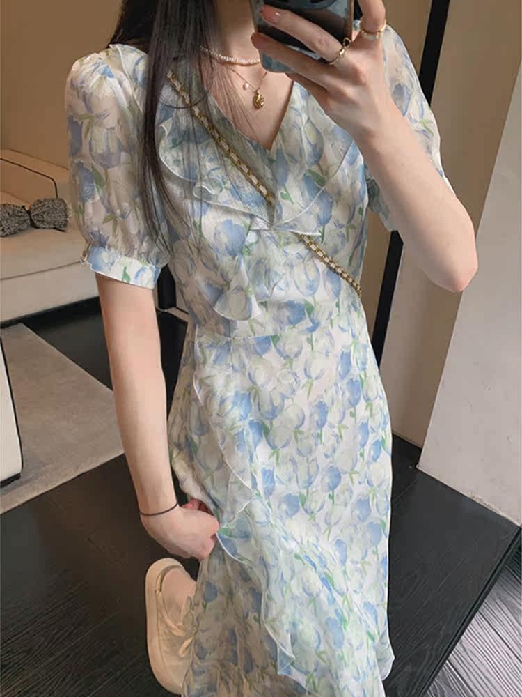 Приталенное платье, дизайнерский милый корсет, коллекция 2022, в цветочек, тренд сезона, V-образный вырез