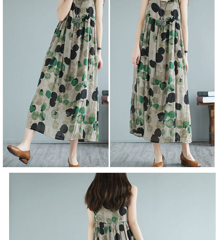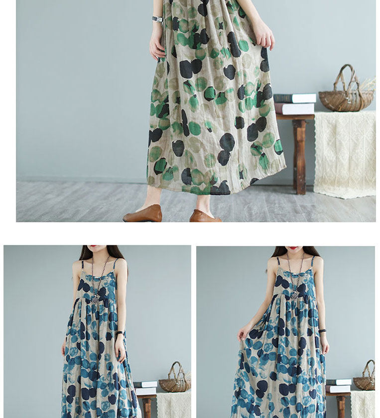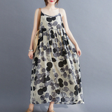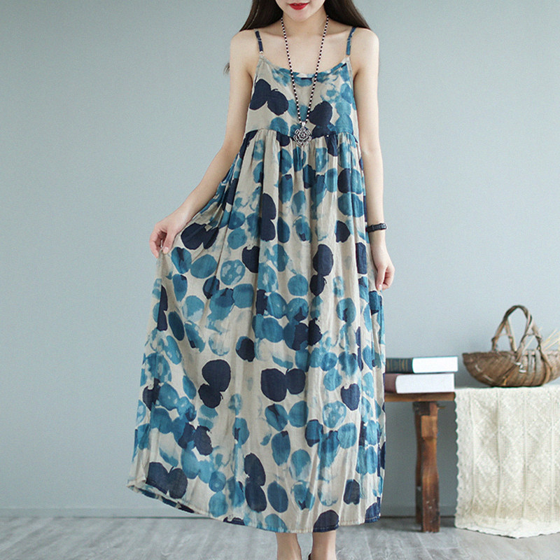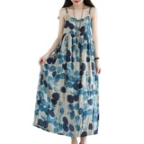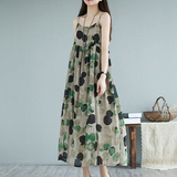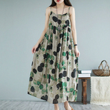 Платье-комбинация, длинная юбка, платье, цветочный принт, из хлопка и льна