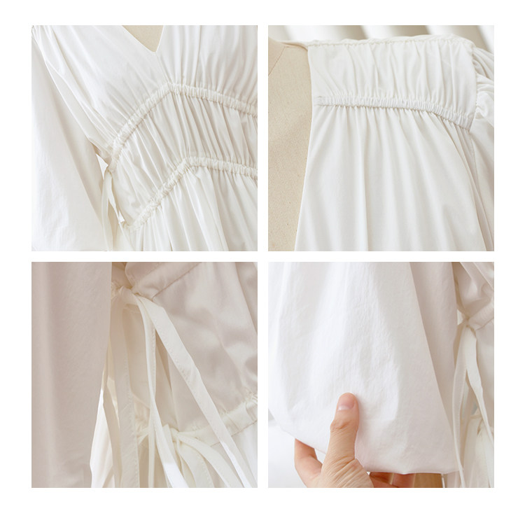 Небольшой дизайнерский белый наряд маленькой принцессы, платье, юбка, длинный корсет, тренд сезона, V-образный вырез, рукава фонарики, на шнурках, средней длины