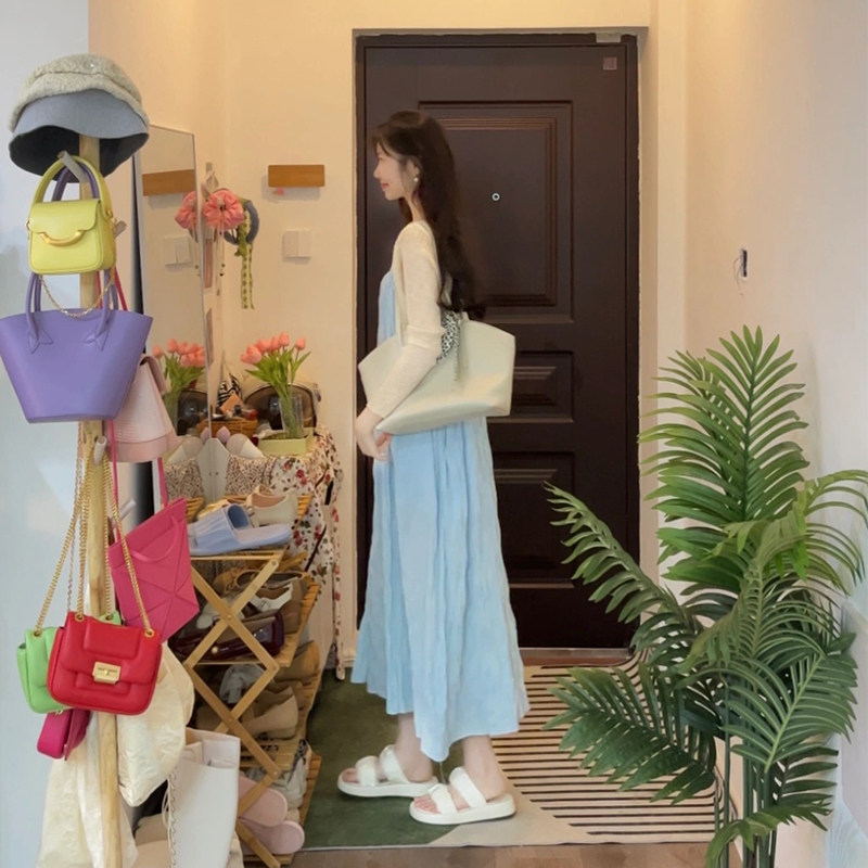 Длинная длинная юбка, синее летнее платье, изысканный стиль, яркий броский стиль, открытые плечи