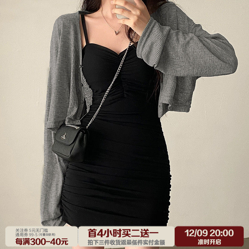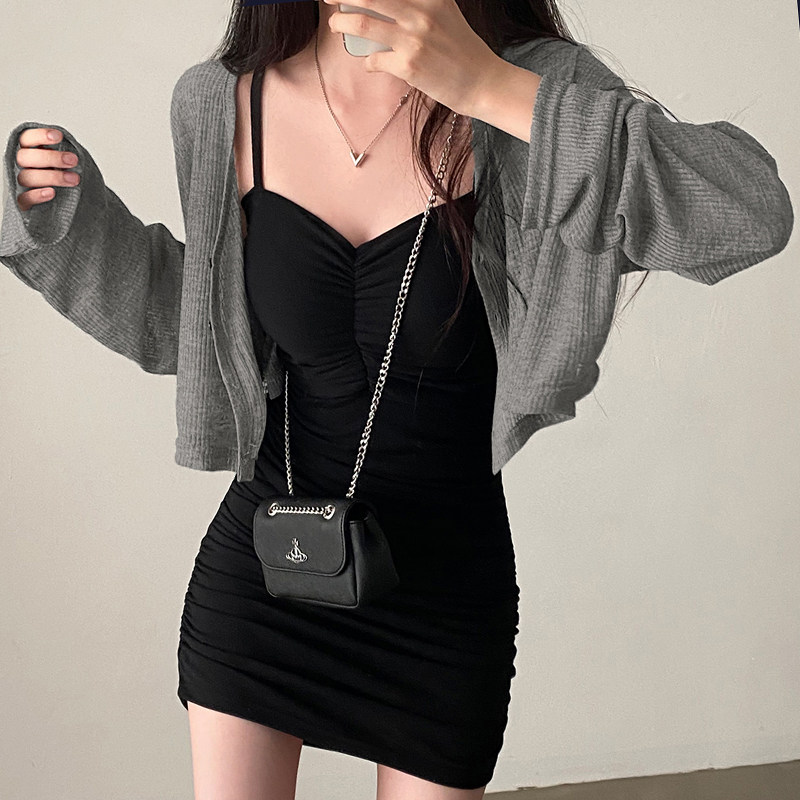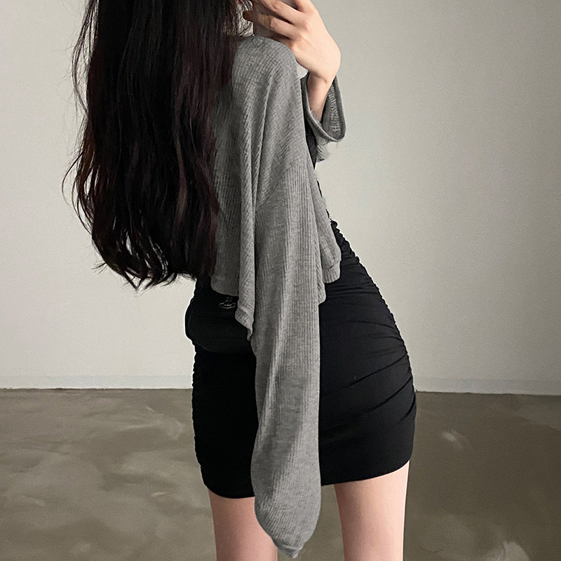 Базовое легкое и тонкое платье, кардиган, в обтяжку, V-образный вырез, свободный крой