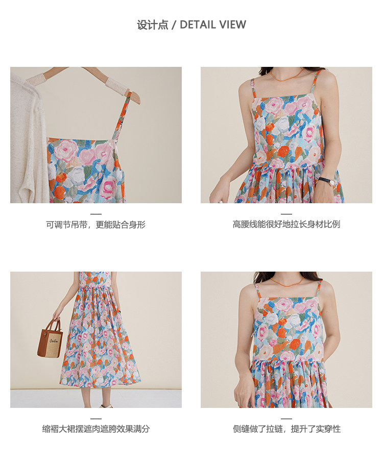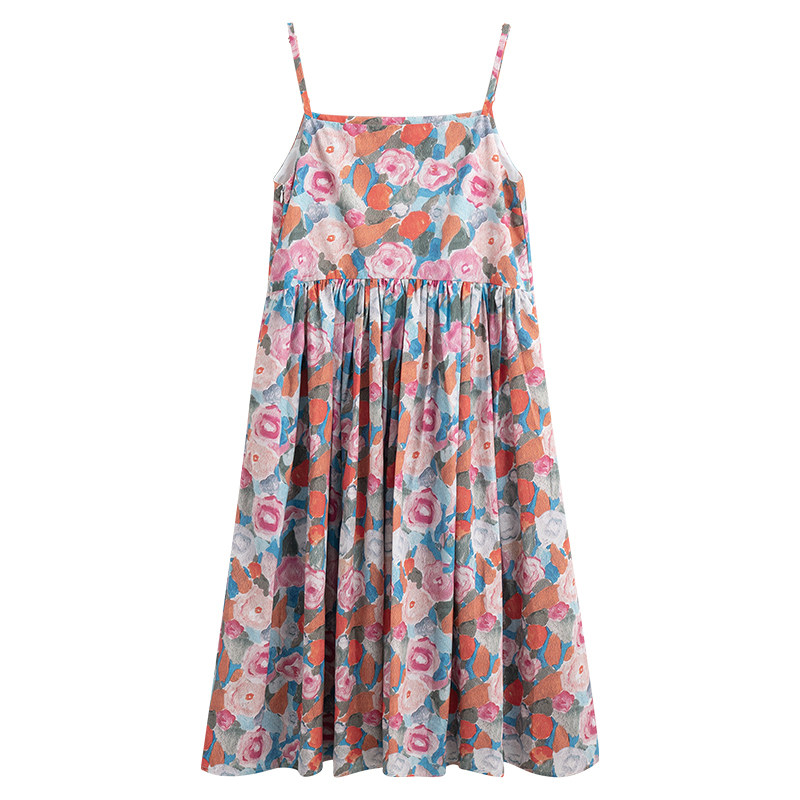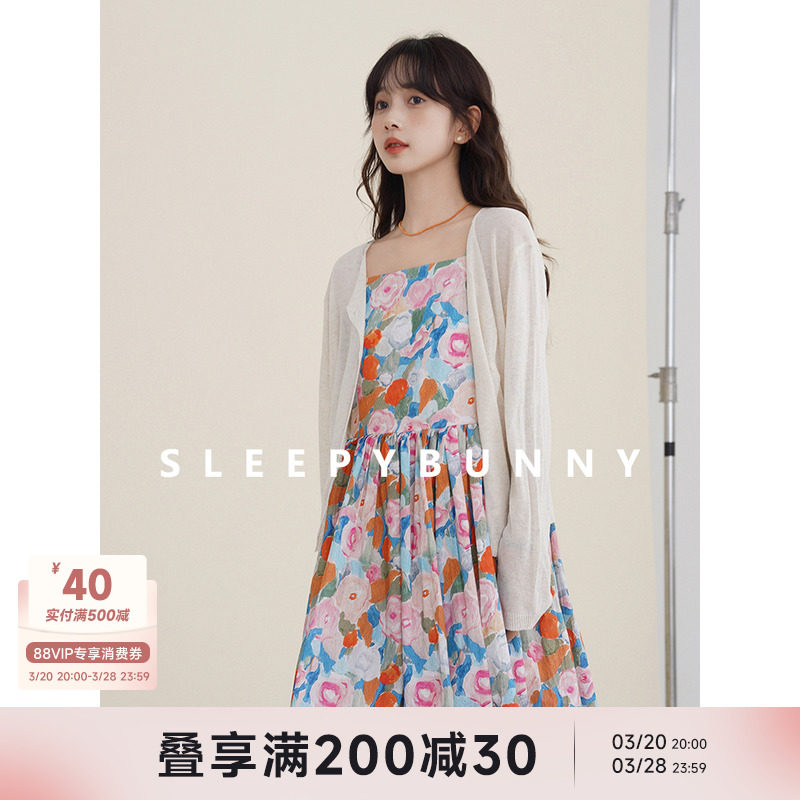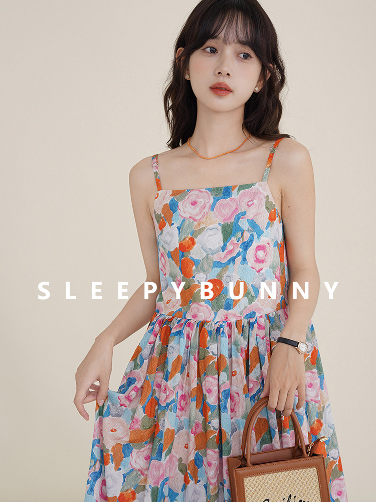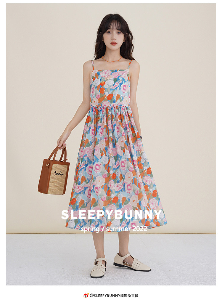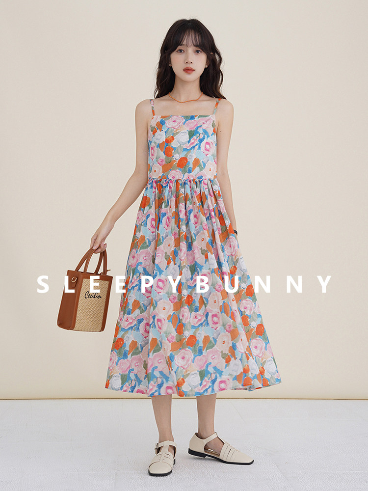 瞌睡兔 Ретро летнее платье-комбинация, милая юбка, пляжное платье, в цветочек, высокая талия, длина миди