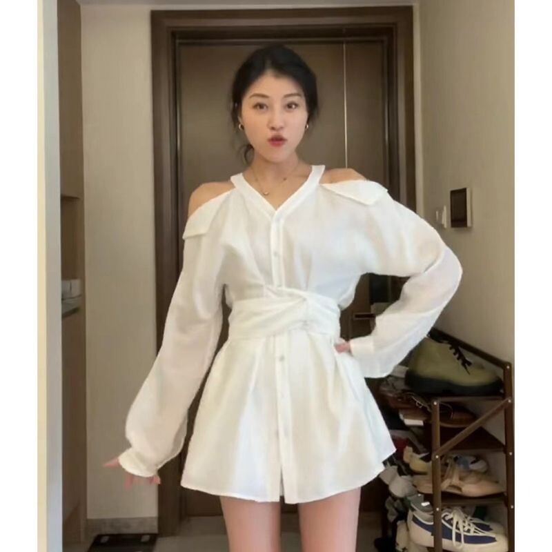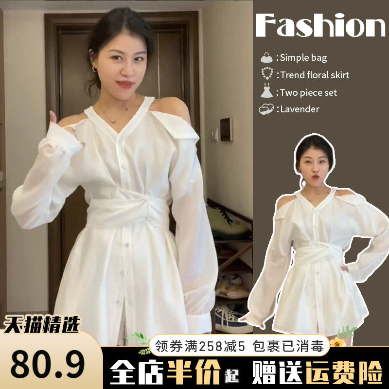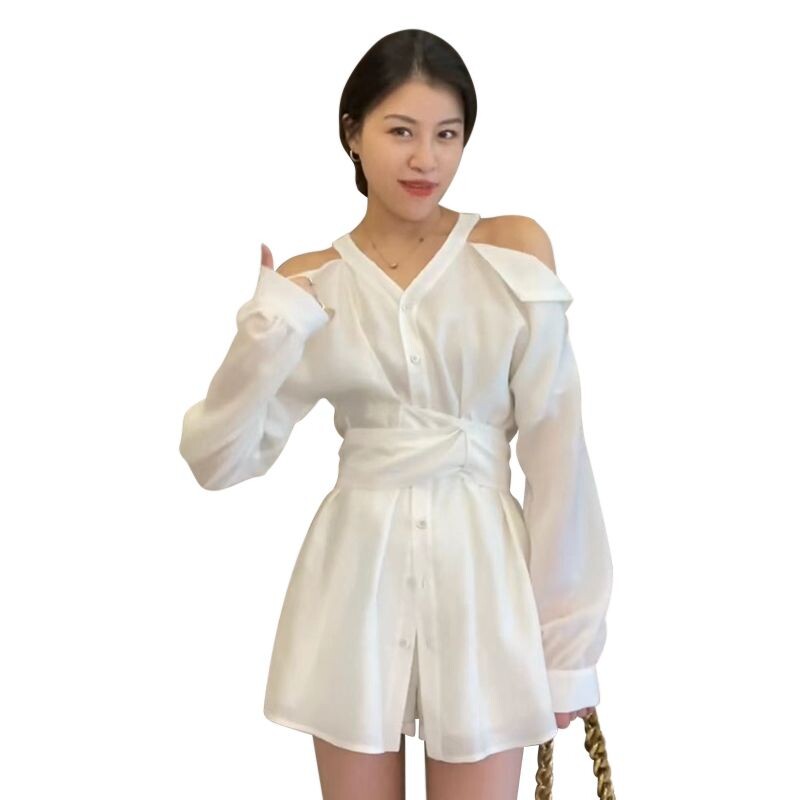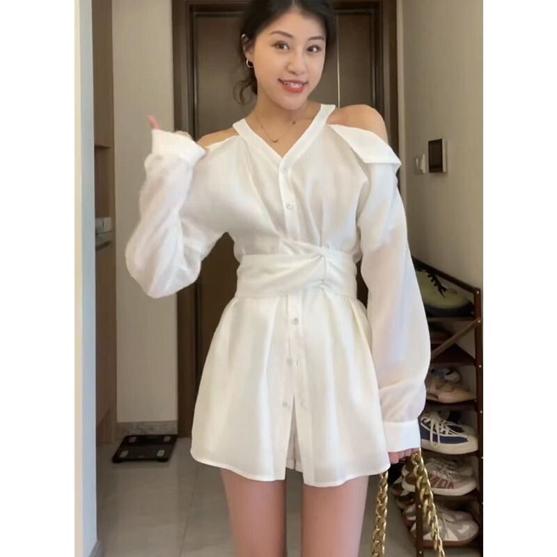 Демисезонная белая рубашка, платье, комплект