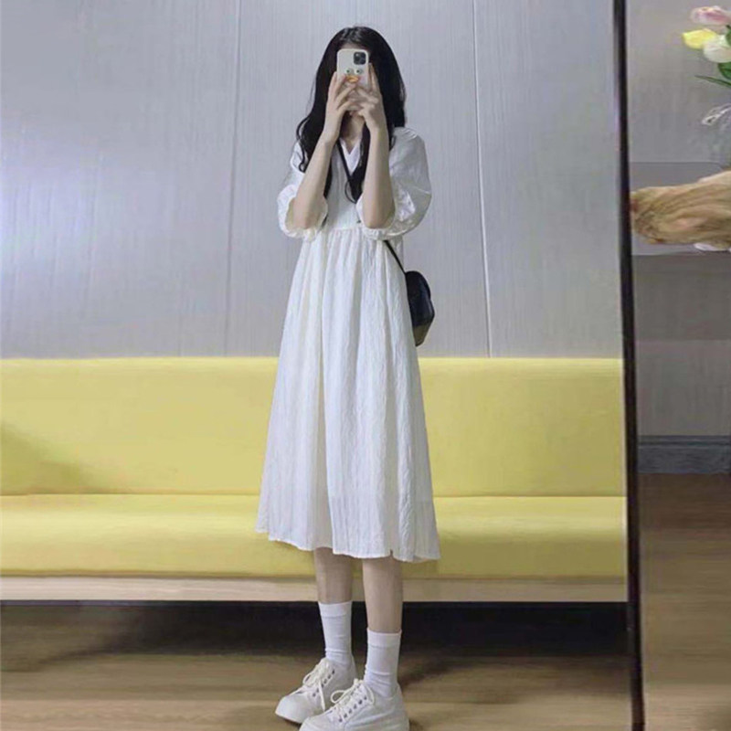 Белое летнее платье, длинная юбка, подходит для подростков, французский стиль