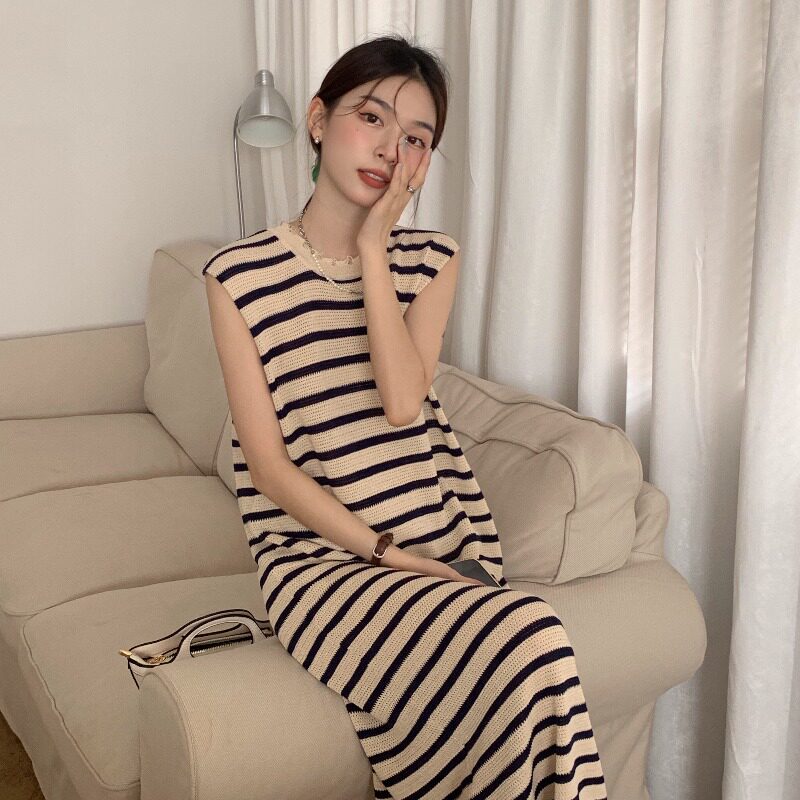 Трикотажный жилет, платье, юбка, длинная футболка без рукавов, платье-футболка, французский стиль, свободный крой, яркий броский стиль