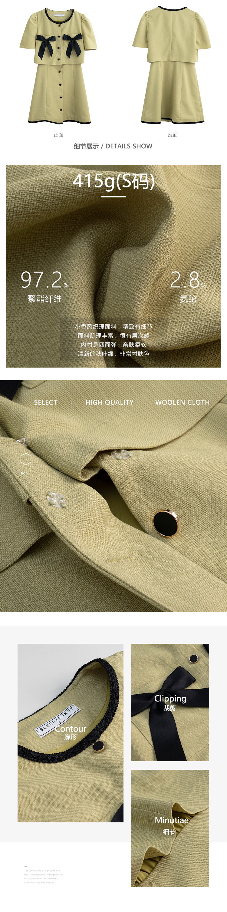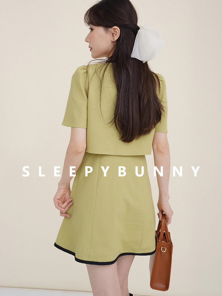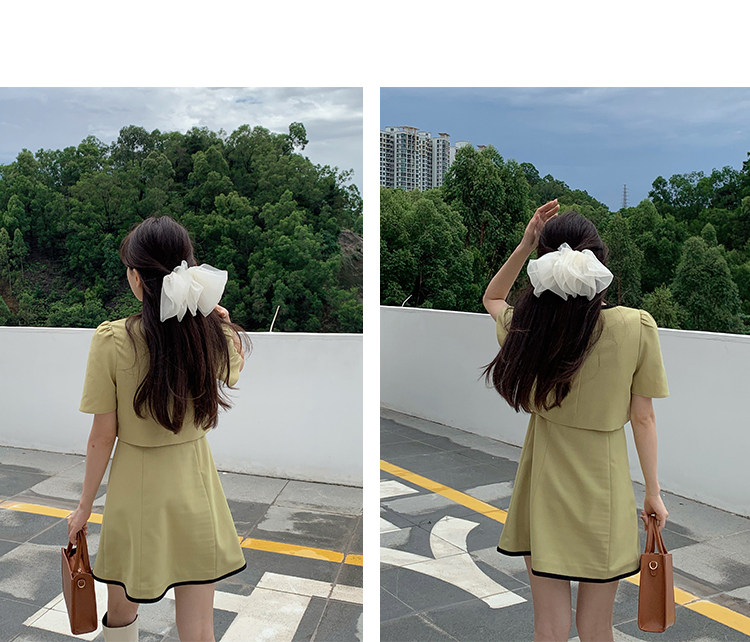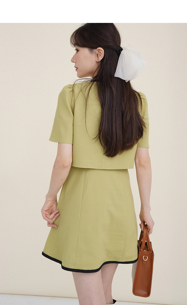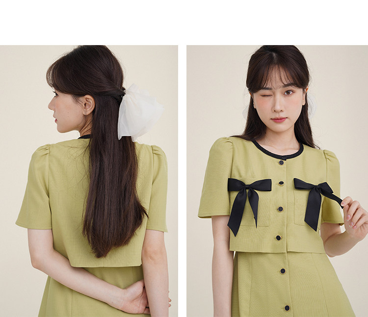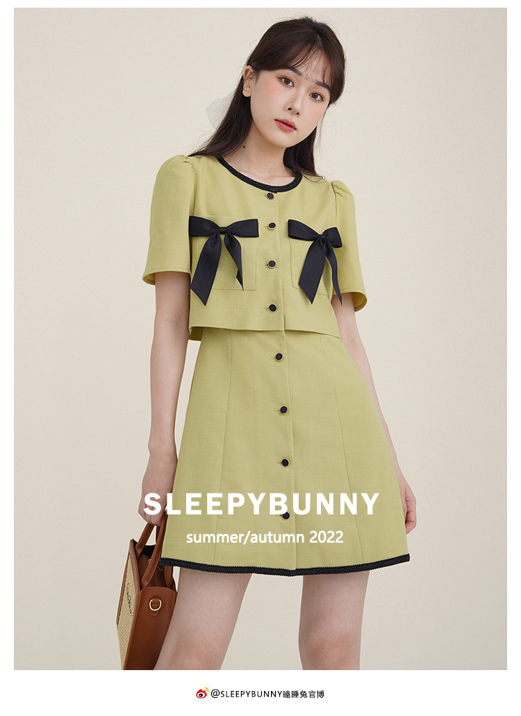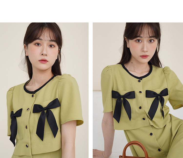 Комплект, милое изысканное платье с круглым воротником, мини-юбка с бантиком, в стиле Шанель, короткий рукав
