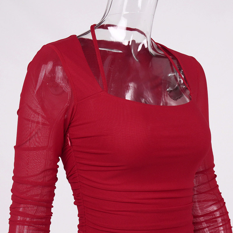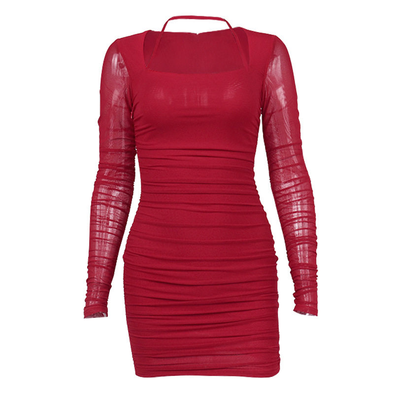 Ремень, лонгслив, брендовое осеннее платье, квадратный вырез, с акцентом на бедрах, 2022