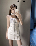 Сексуальный топ без лямок, приталенная джинсовая юбка, летняя мини-юбка, приталенное платье, с акцентом на бедрах