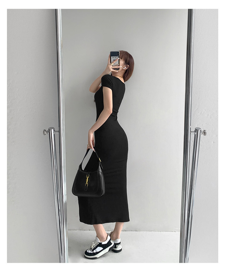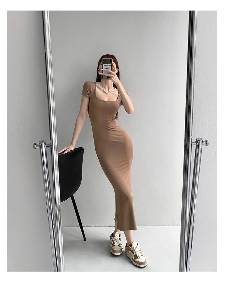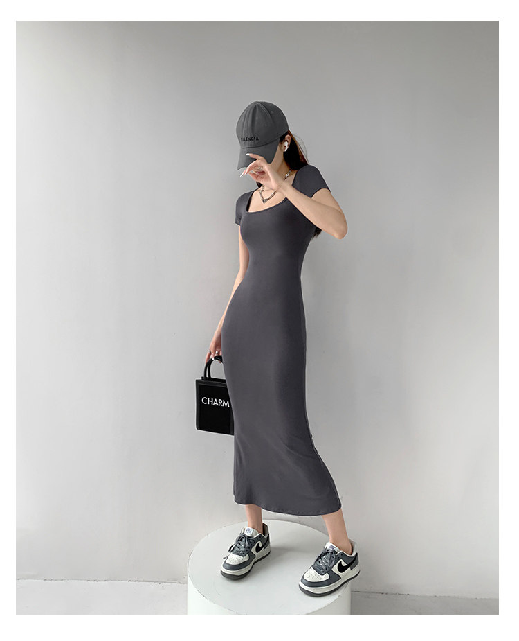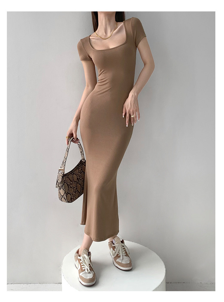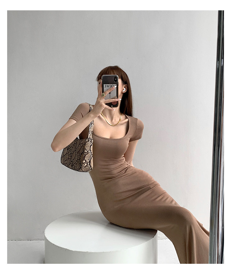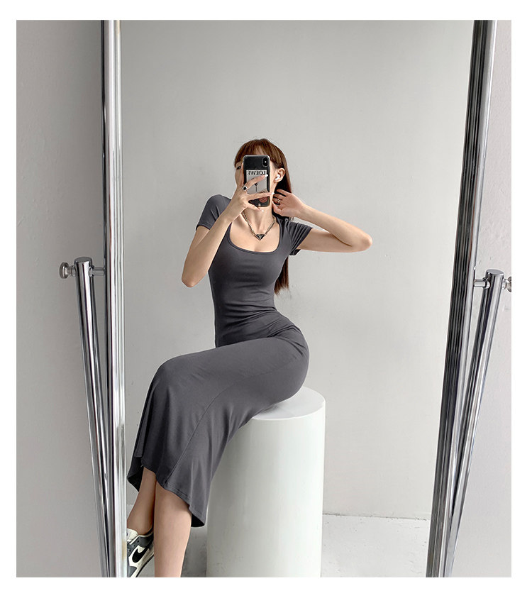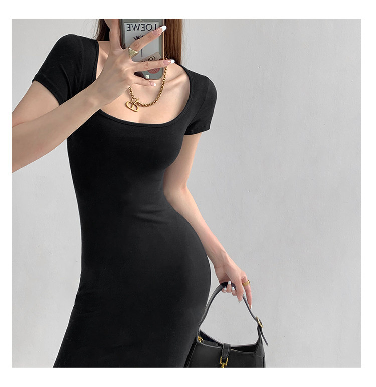 Корсет, поясная сумка, сексуальное платье, облегающий крой, квадратный вырез, с акцентом на бедрах, длина миди, по фигуре, короткий рукав