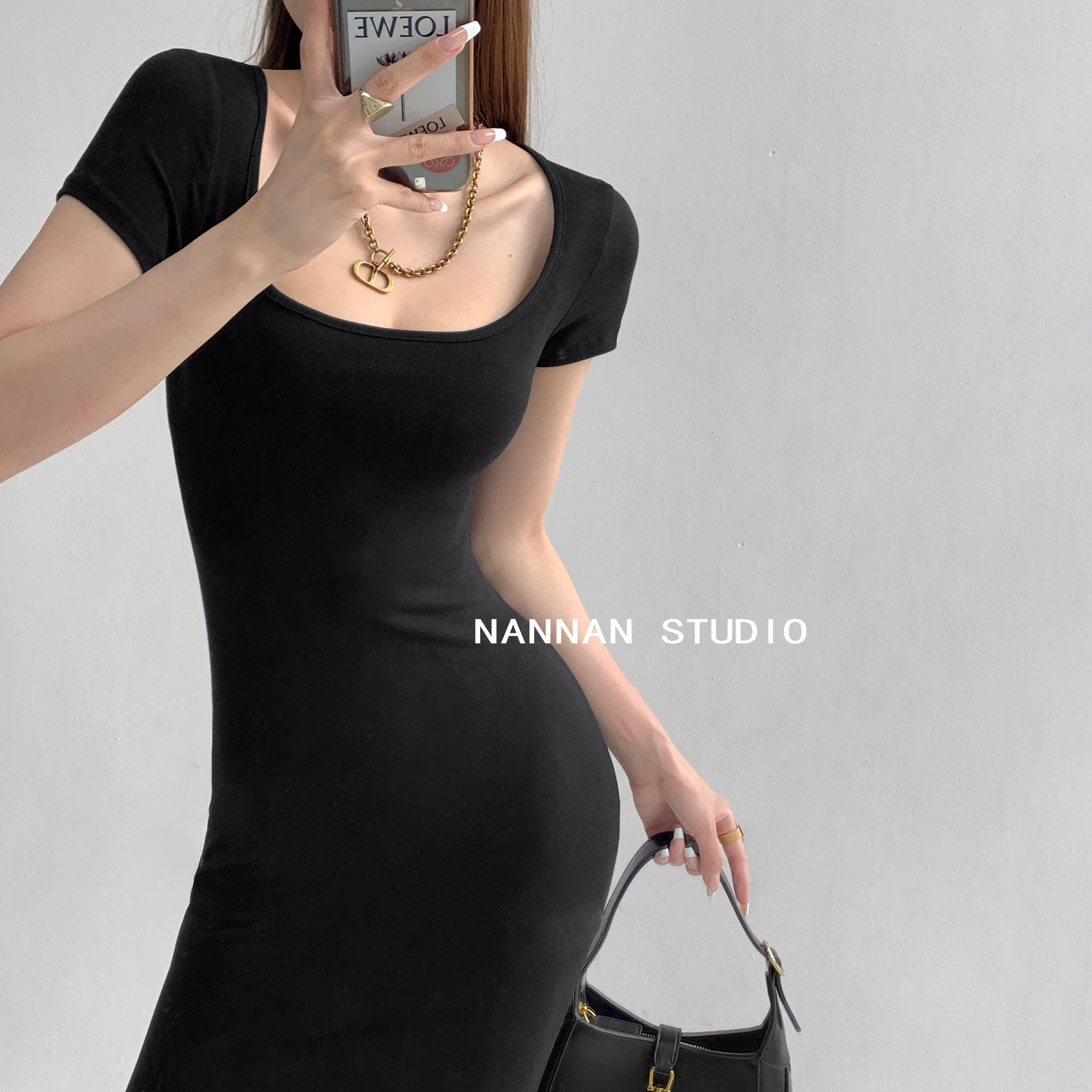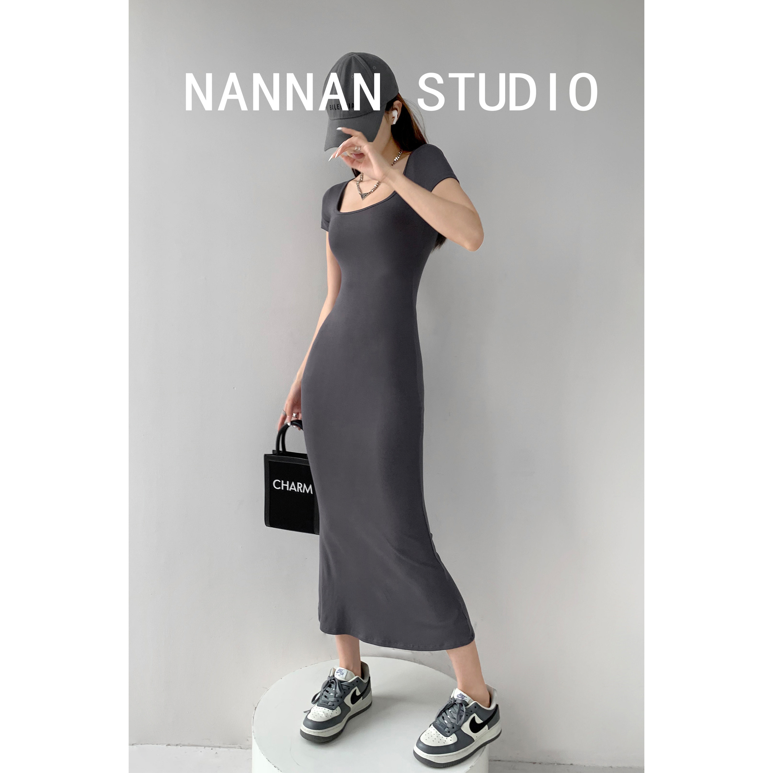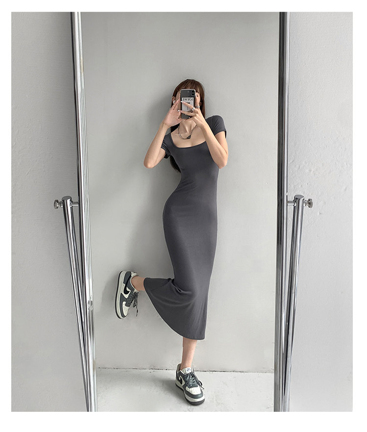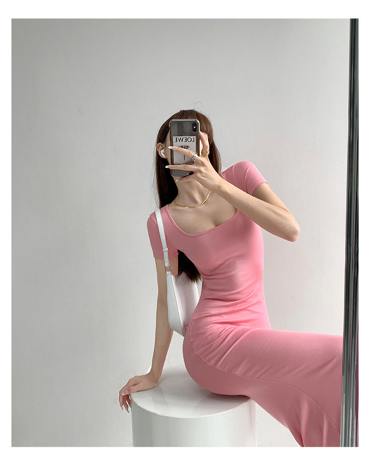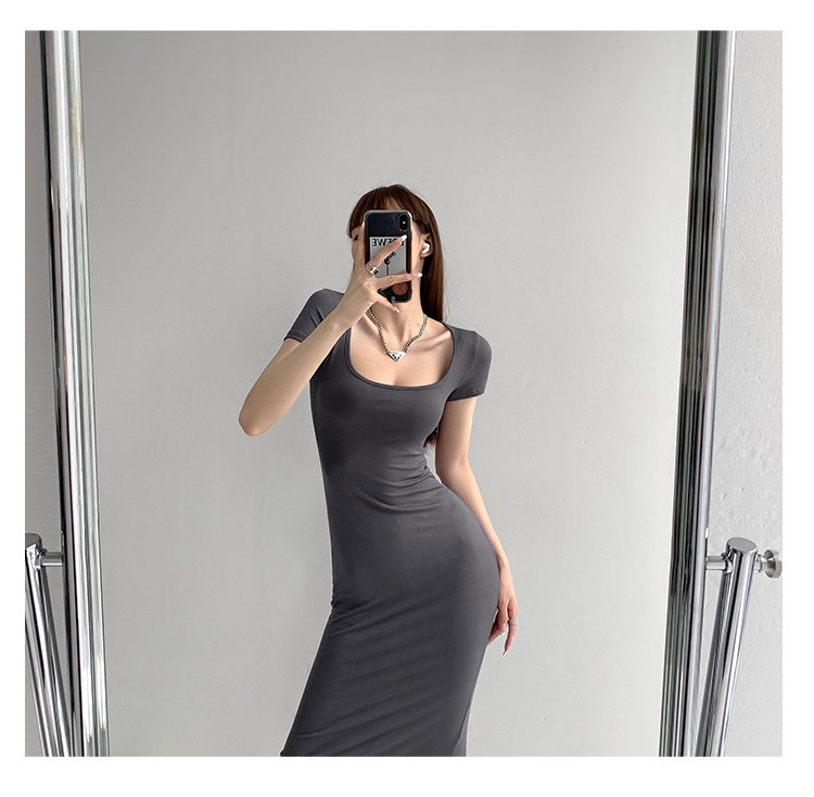 Корсет, поясная сумка, сексуальное платье, облегающий крой, квадратный вырез, с акцентом на бедрах, длина миди, по фигуре, короткий рукав