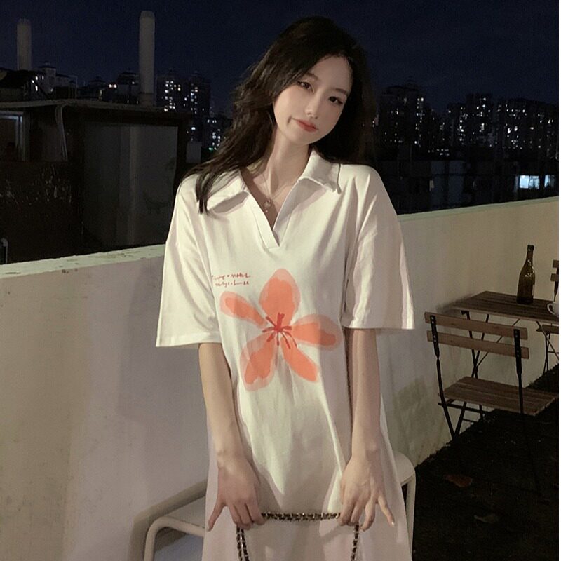 Летняя футболка с коротким рукавом для отдыха, платье-футболка, платье, оверсайз, по фигуре, большой размер