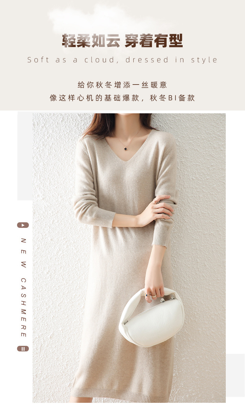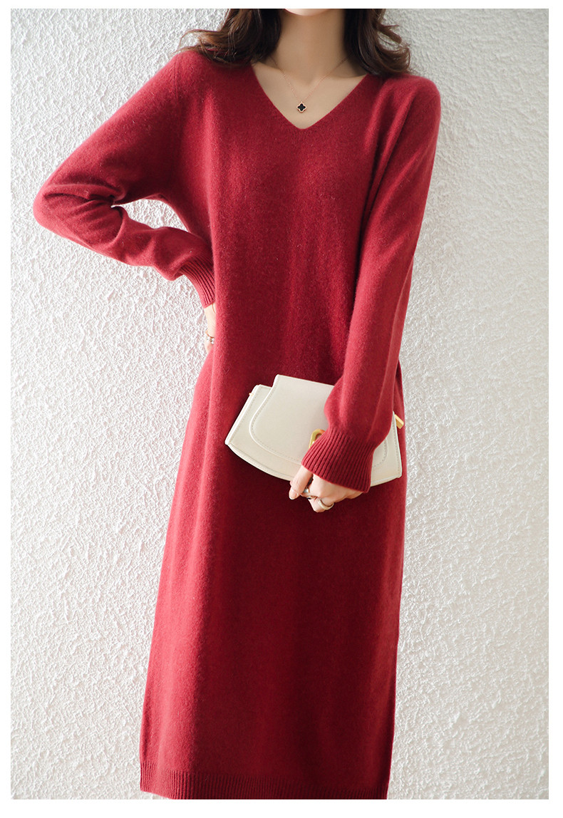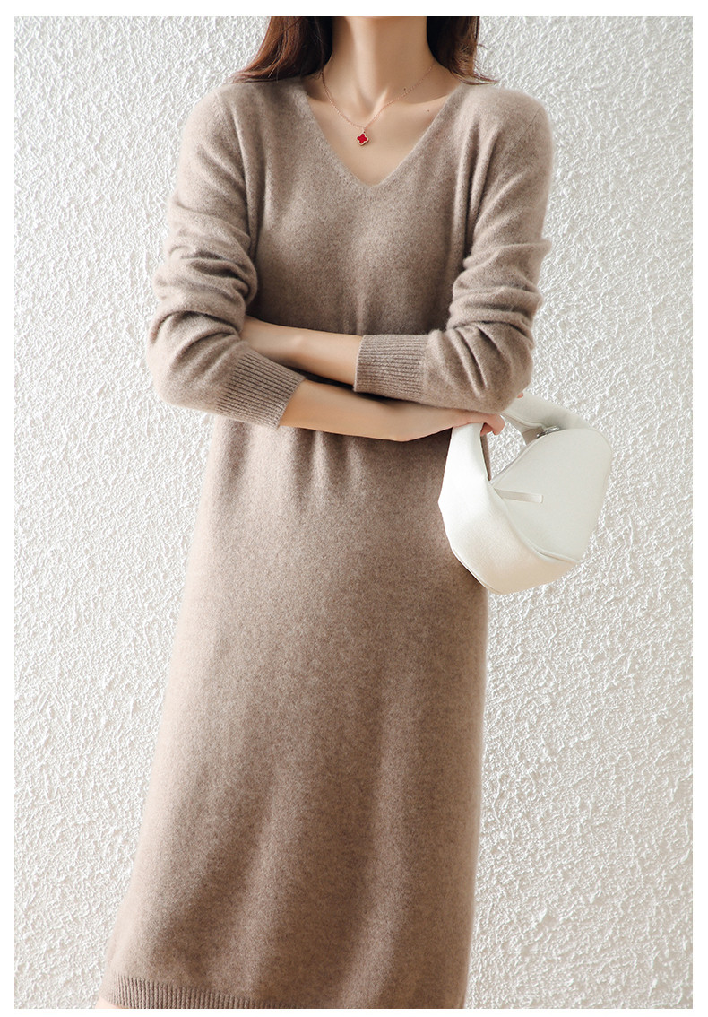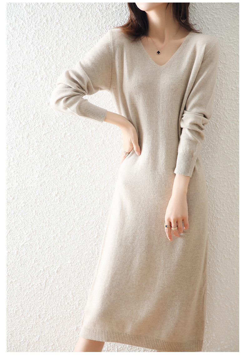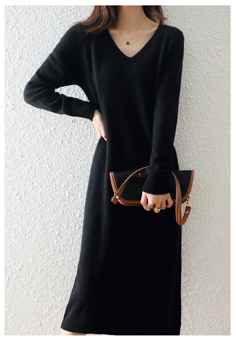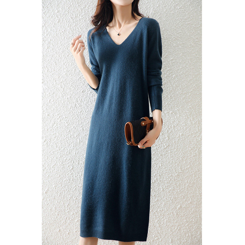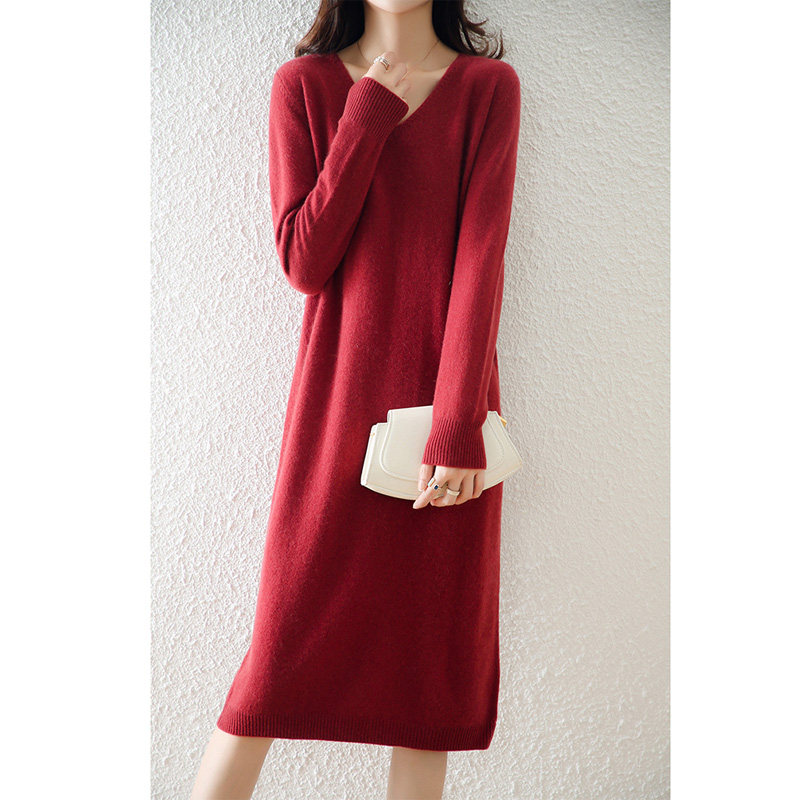 Шерстяной демисезонный свитер, кашемировая трикотажная длинная юбка, V-образный вырез, свободный крой